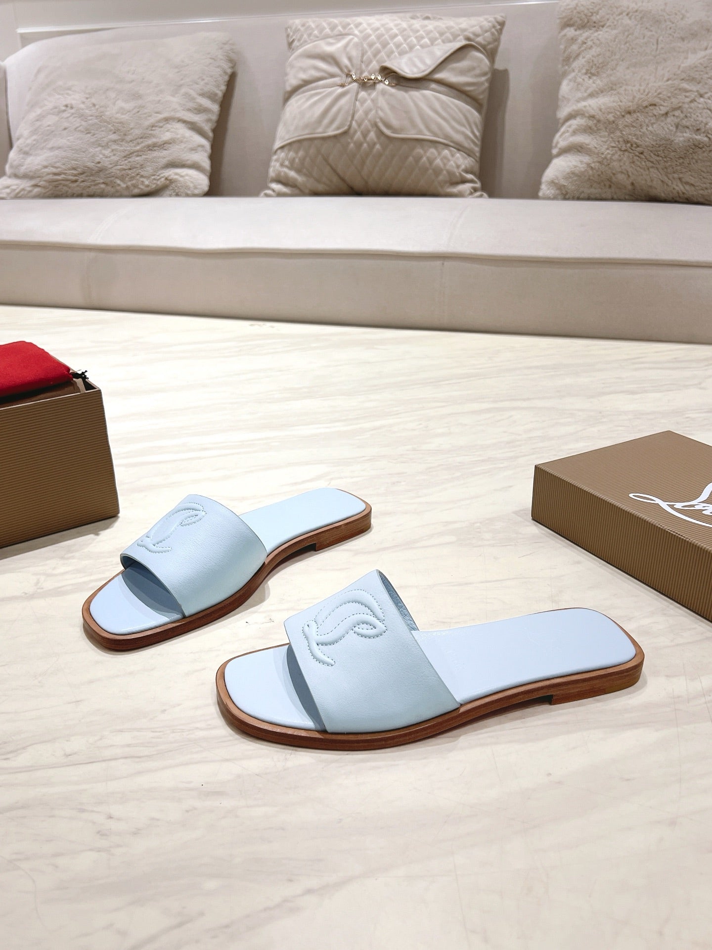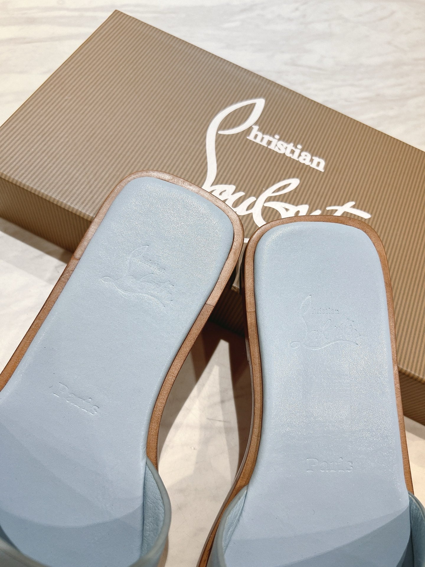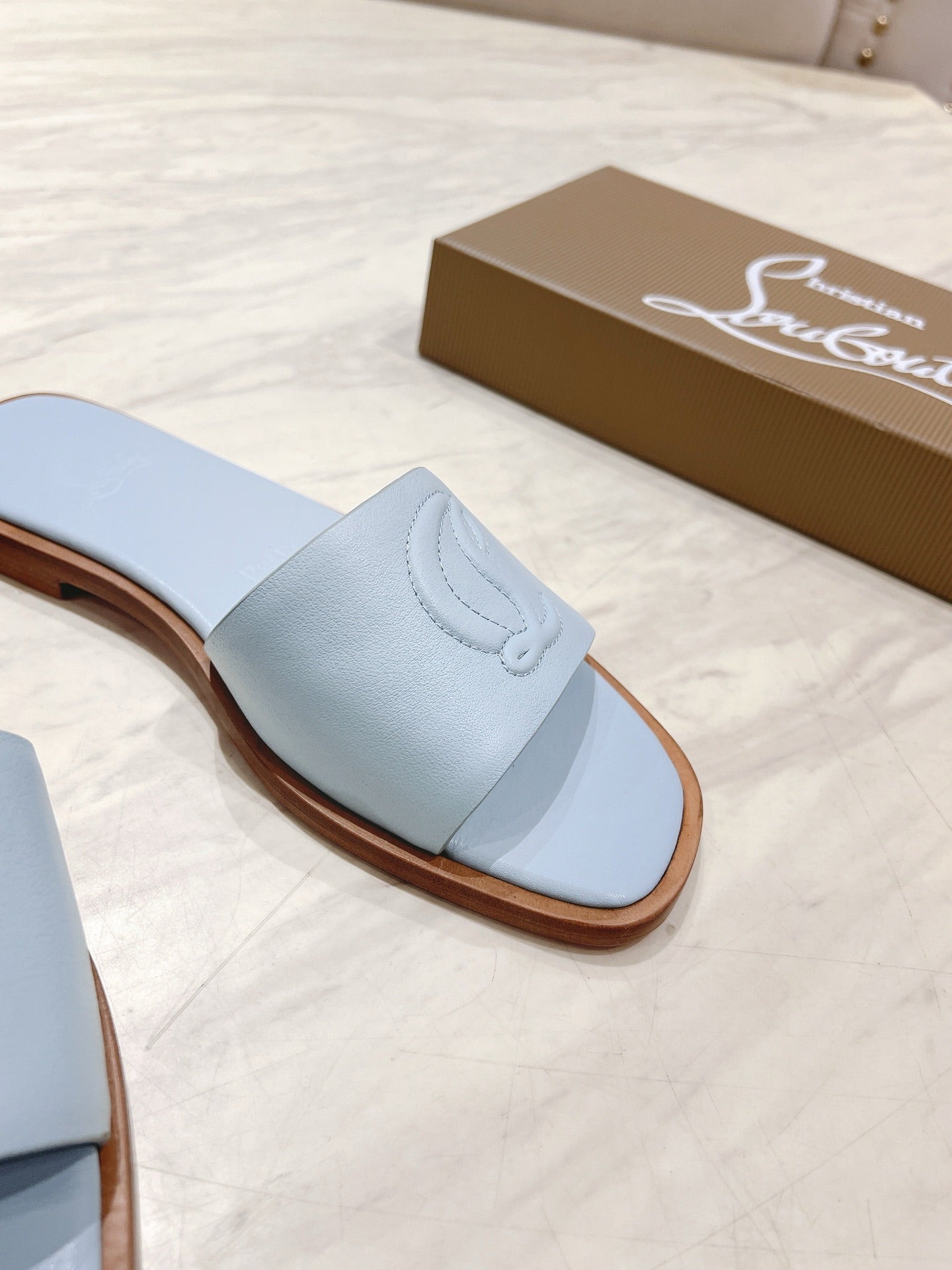 CL 25 Slippers Blue Top Layer High Gloss Calfskin 307499