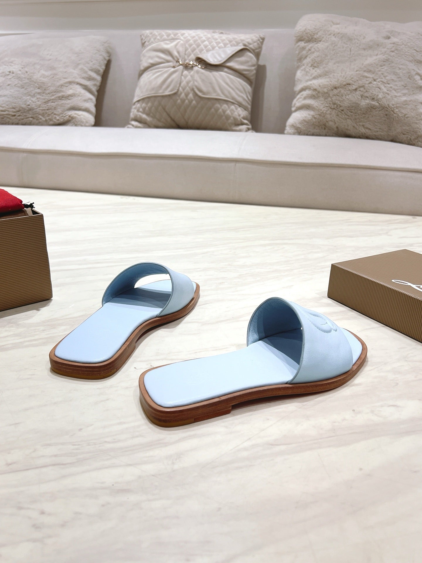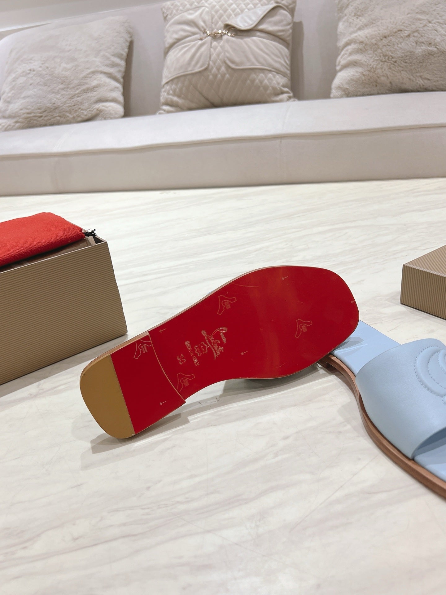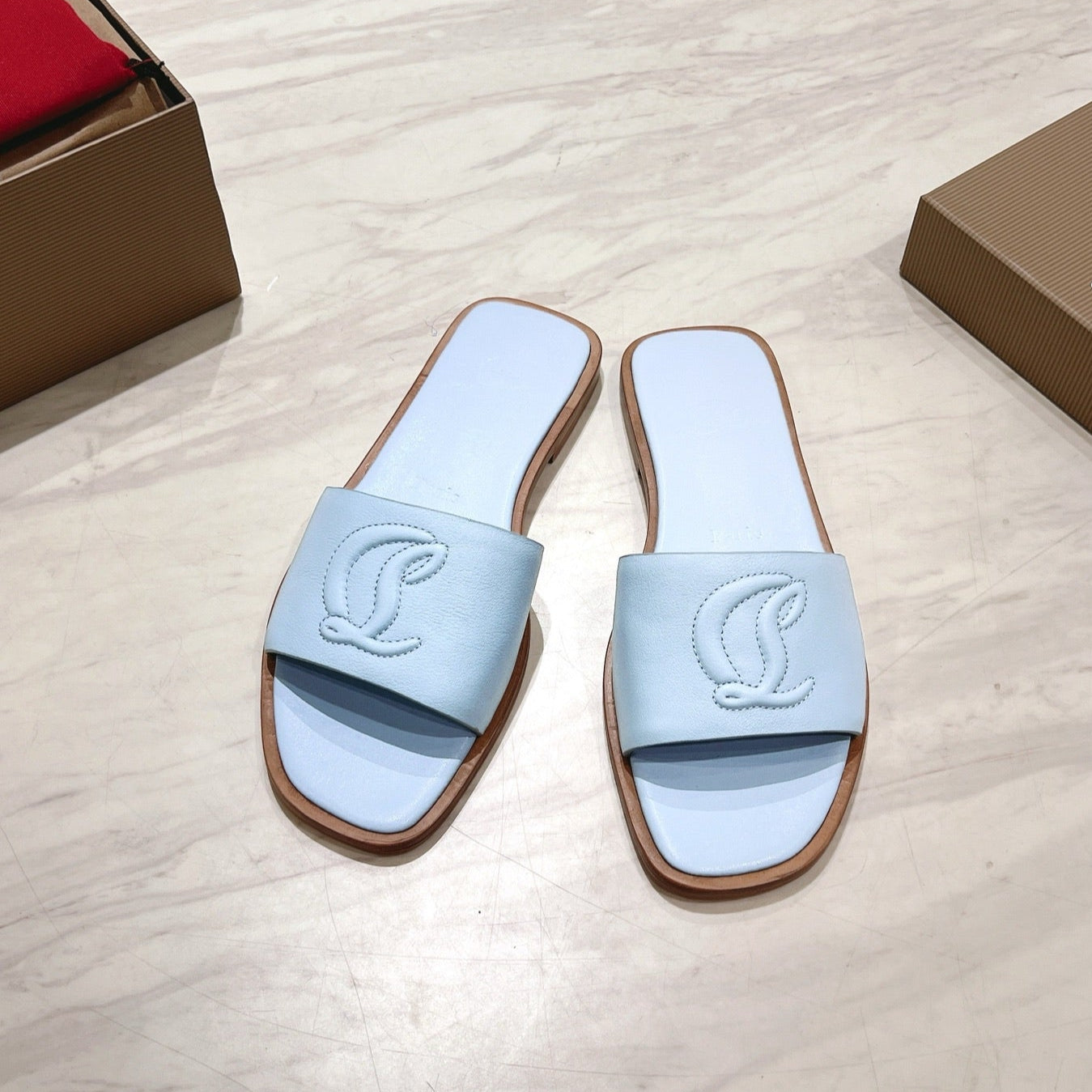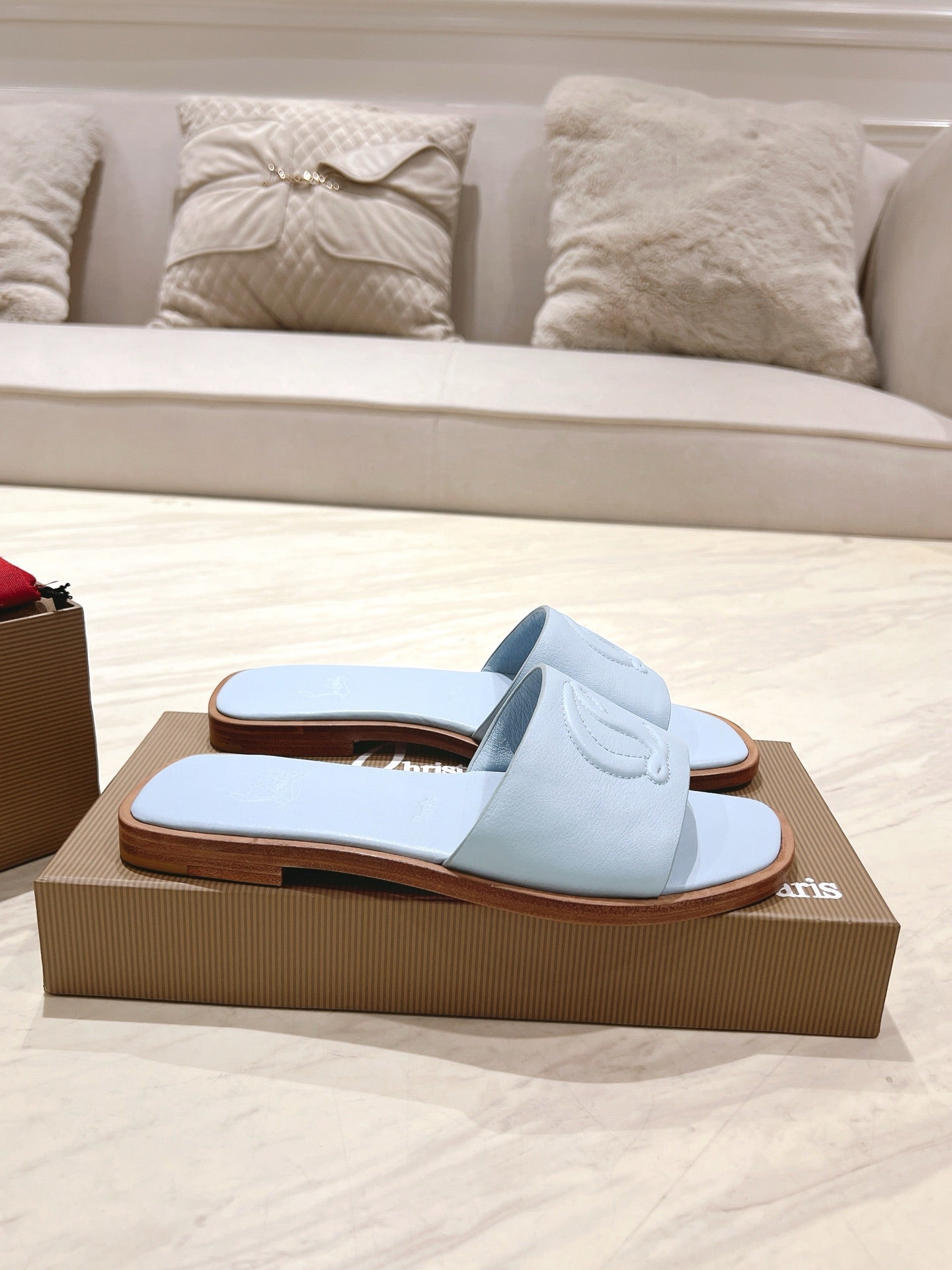 CL 25 Slippers Blue Top Layer High Gloss Calfskin 307499