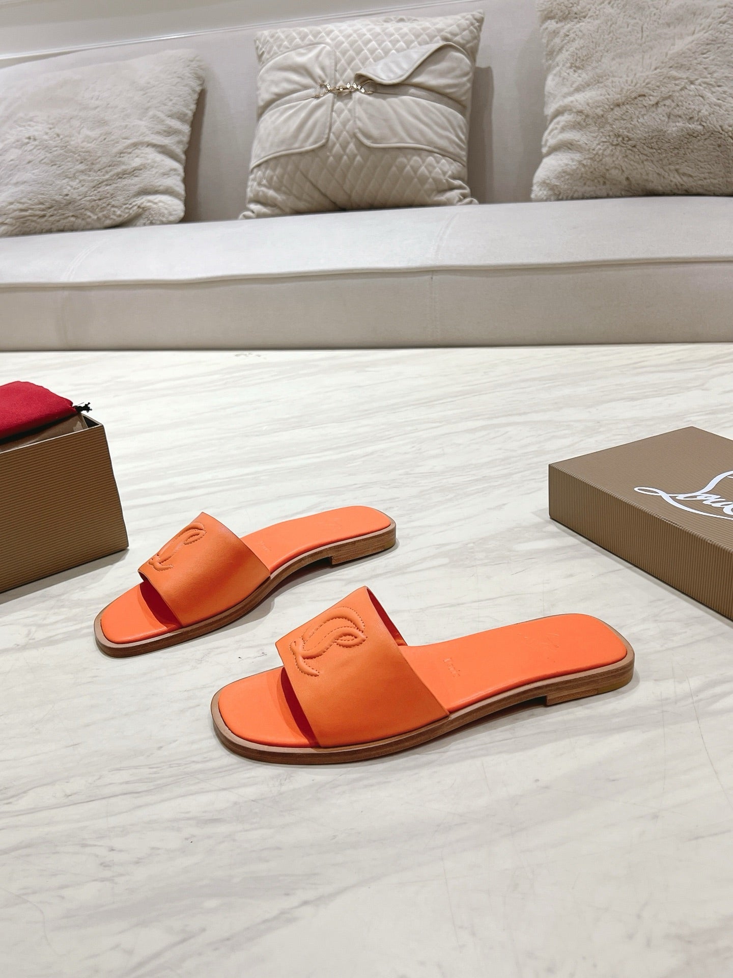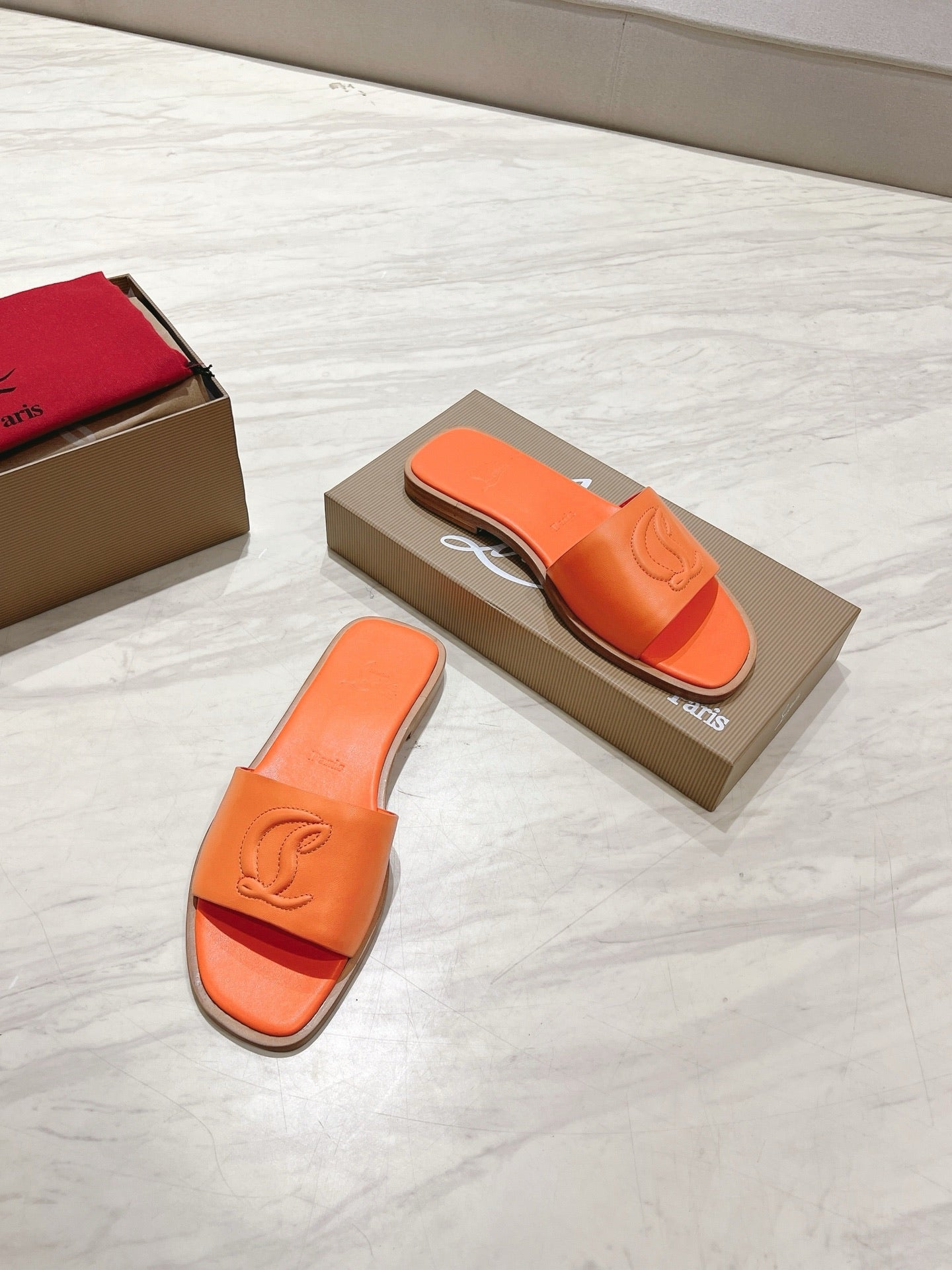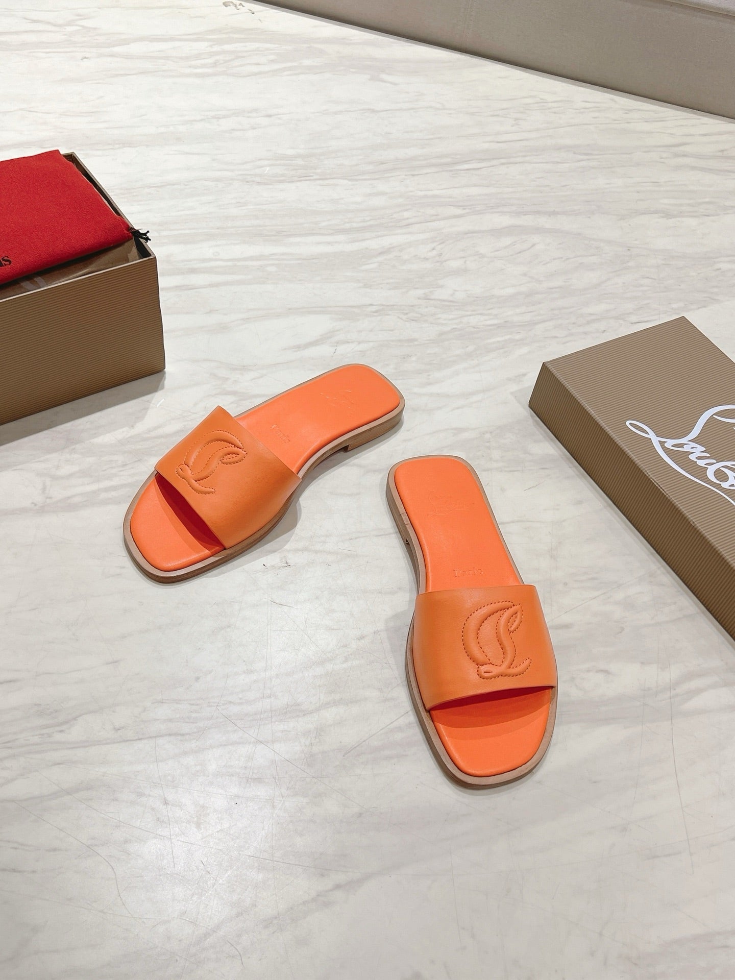 CL 25 Slippers Oranger Top Layer High Gloss Calfskin 307498