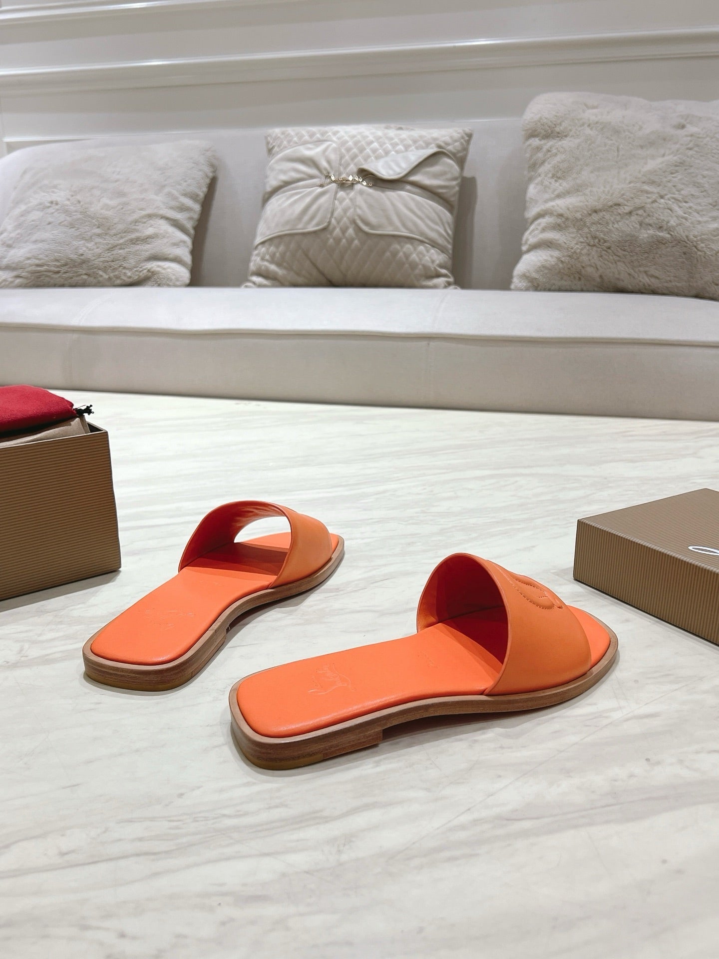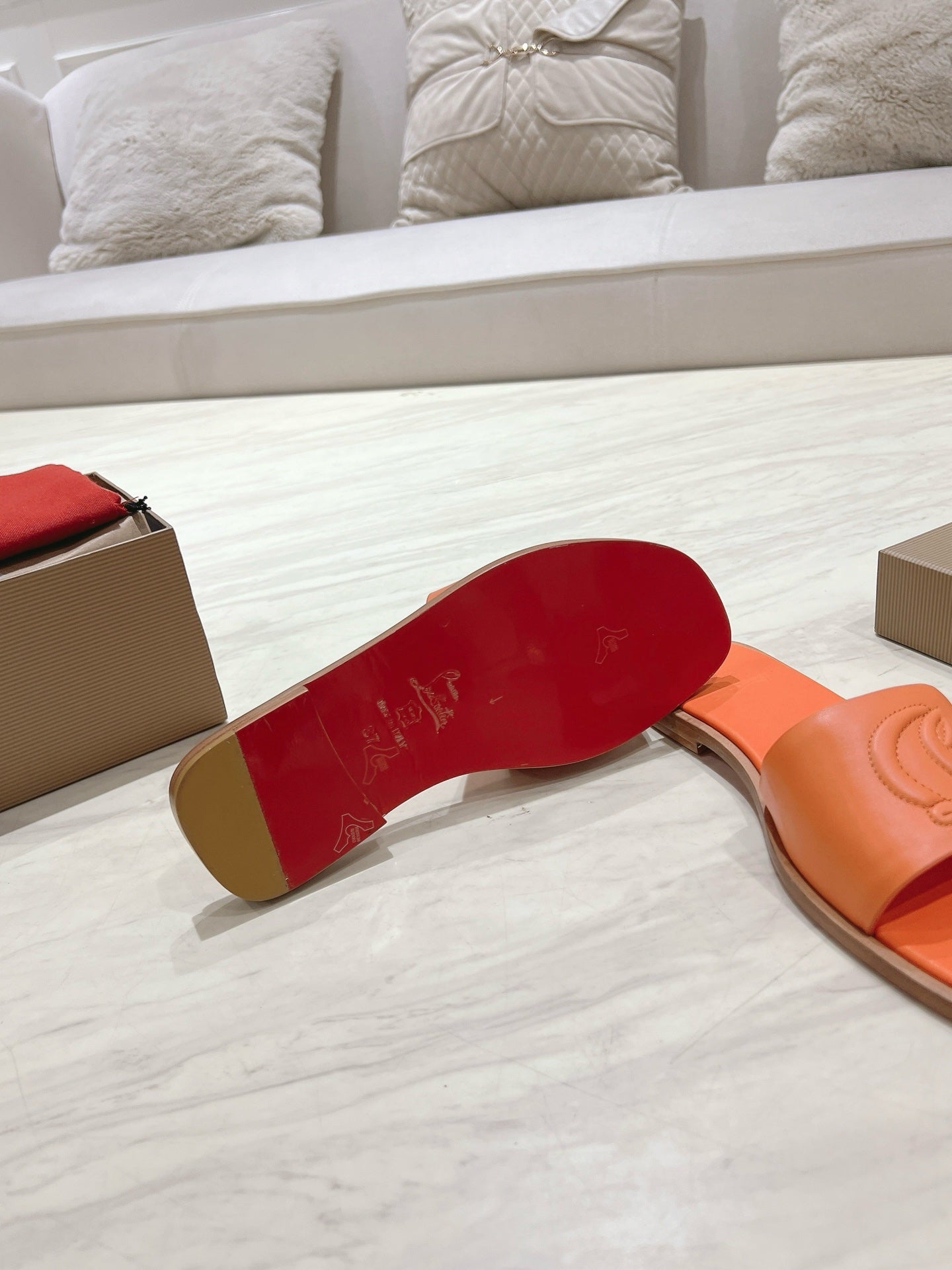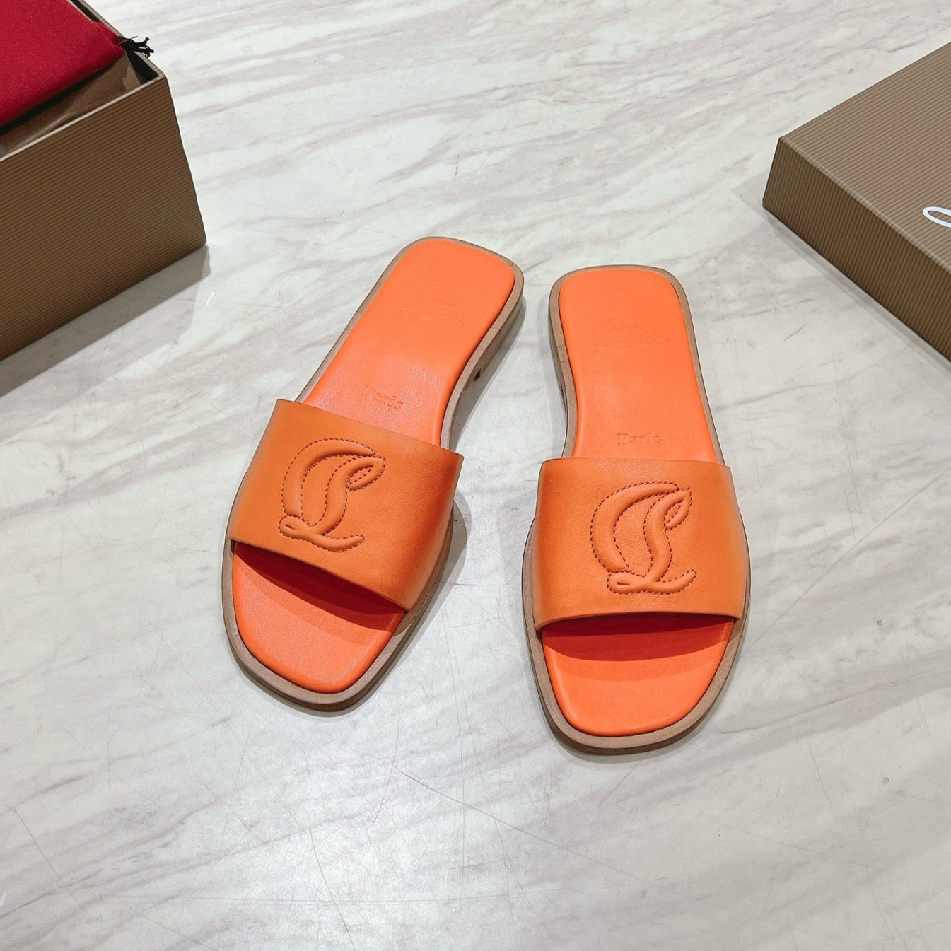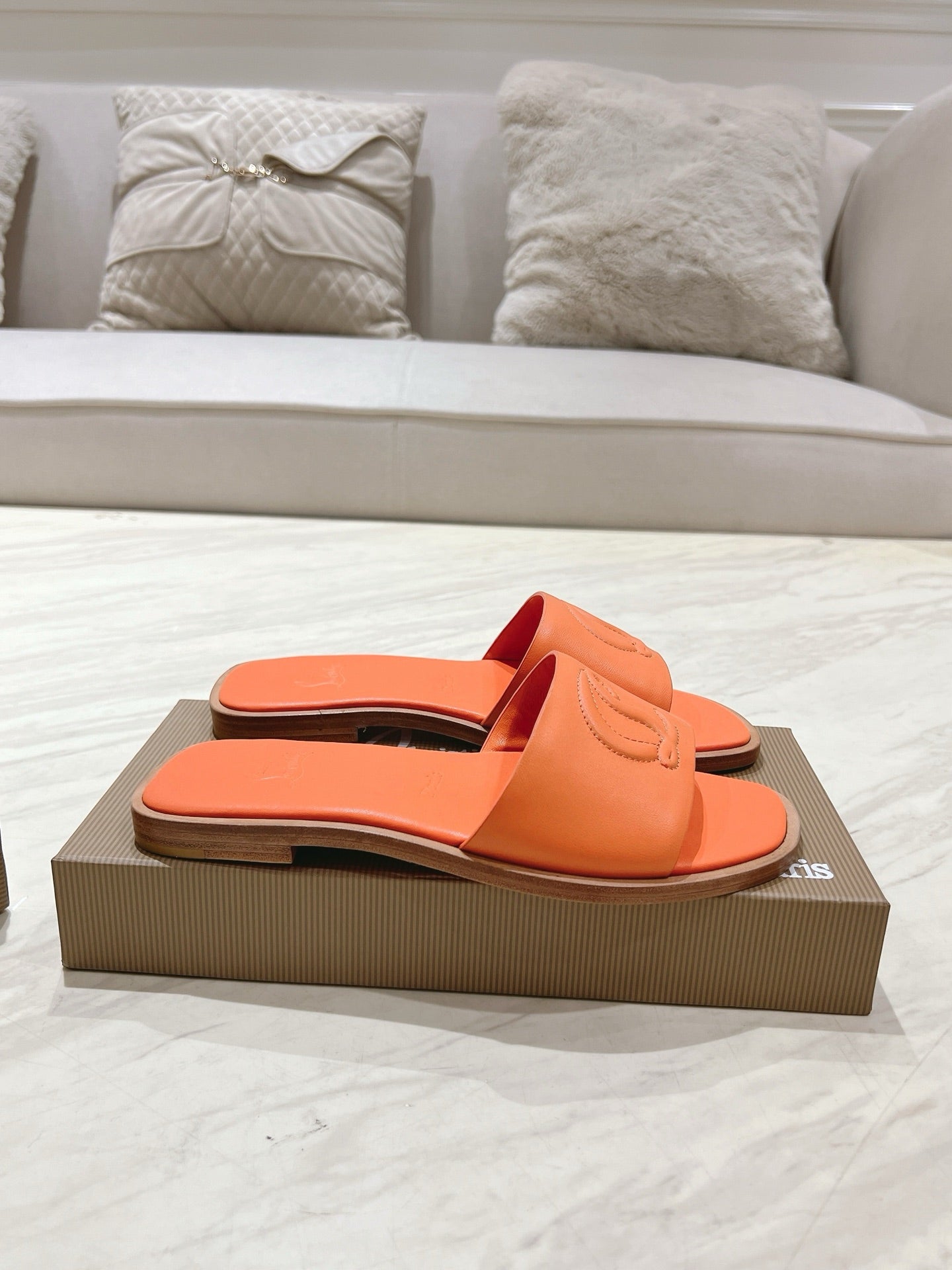 CL 25 Slippers Oranger Top Layer High Gloss Calfskin 307498
