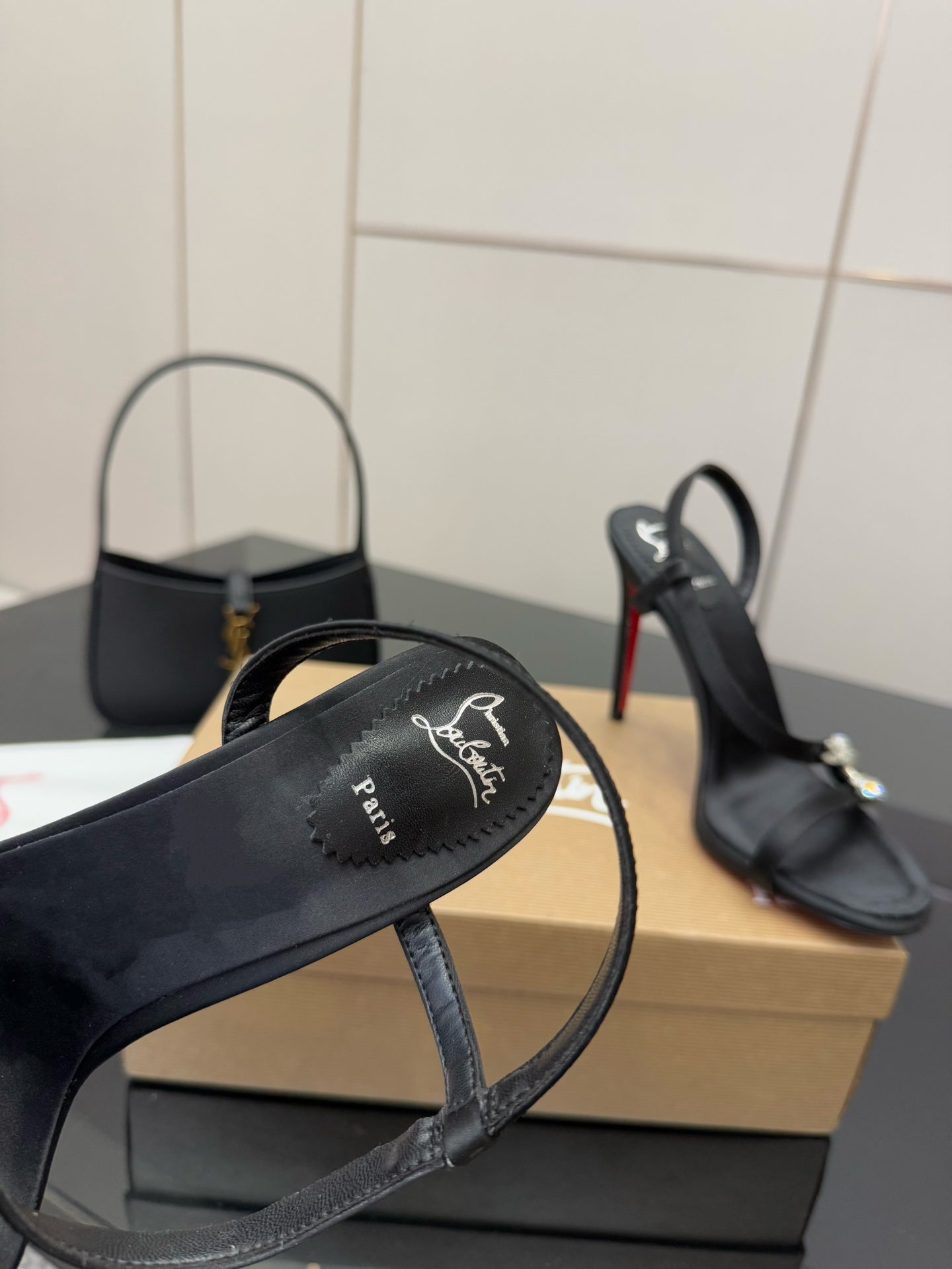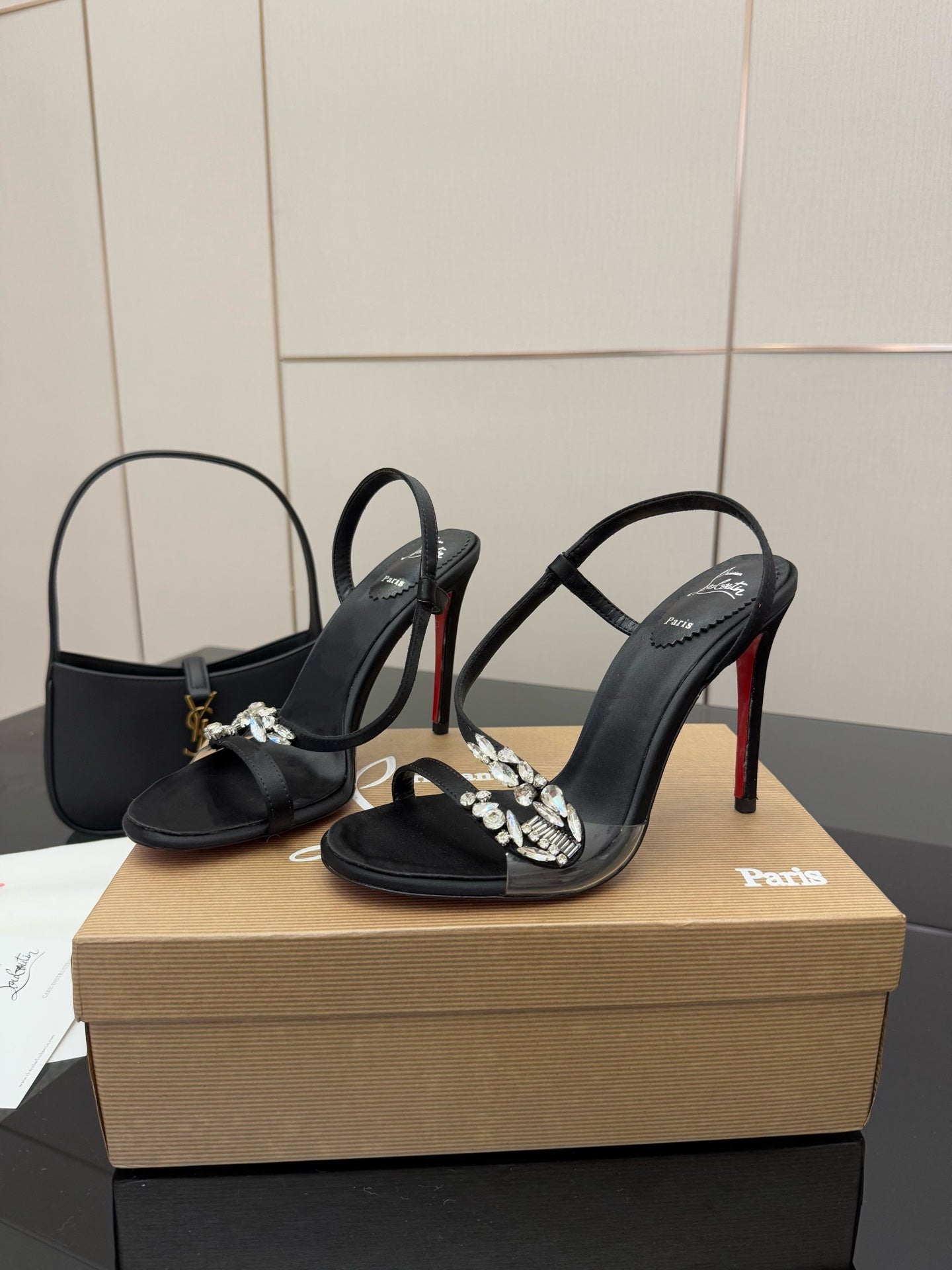 CL Diamond Sandals 10.5cm Black Silk 299879