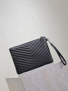 CLUTCH 24 IN BLACK QUILTED CALFSKIN SILVER BUCKLE