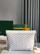 CONTI POUCH 24 IN WHITE LAMBSKIN AND GOYARDINE CANVAS