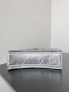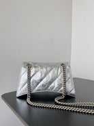 CRUSH CHAINED BAG 25 IN SILVER METALLIC QUILTED CRUSHED CALFSKIN
