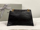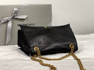 CRUSH MEDIUM CHAIN BAG 31 IN BLACK CRUSHED CALFSKIN GOLD HARDWARE