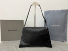 CRUSH SHOULDER BAG 31 IN BLACK CRUSHED CALFSKIN LEATHER STRAP SILVER HARDWARE