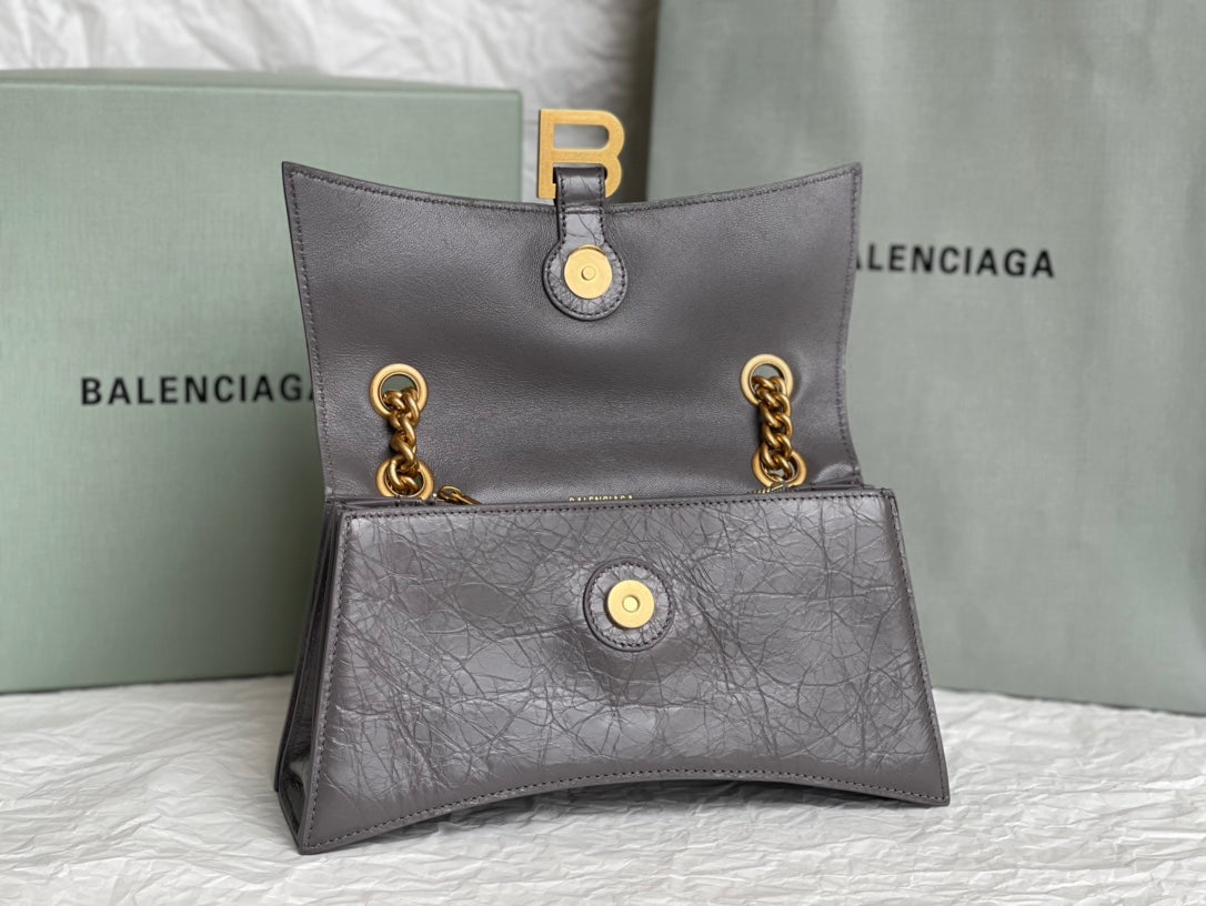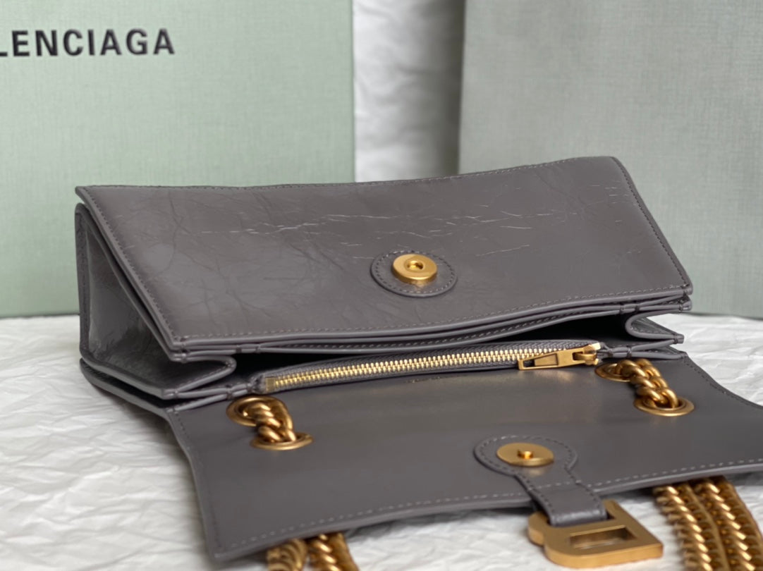CRUSH SMALL CHAIN BAG 25 IN SUVA GRAY CRUSHED CALFSKIN GOLD HARDWARE