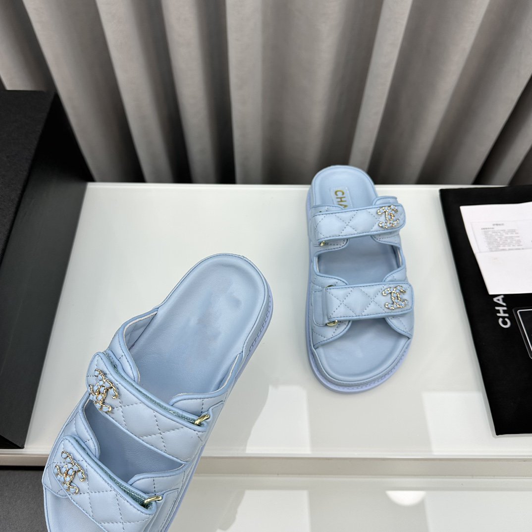 dad sandals cloud blue lambskin mules