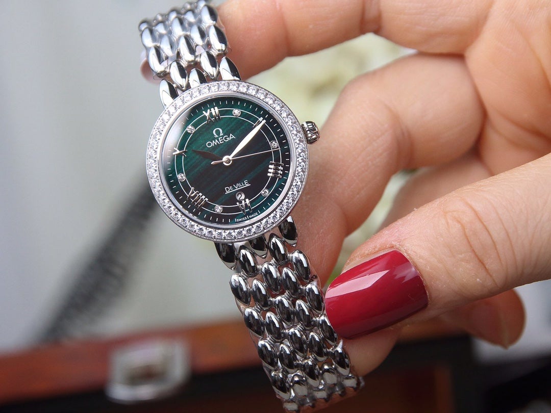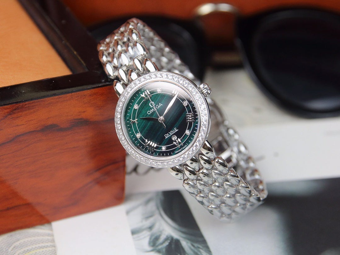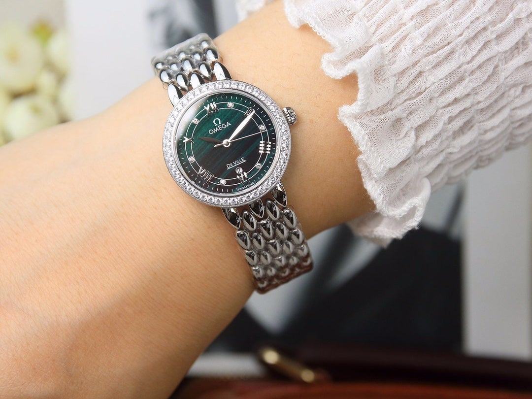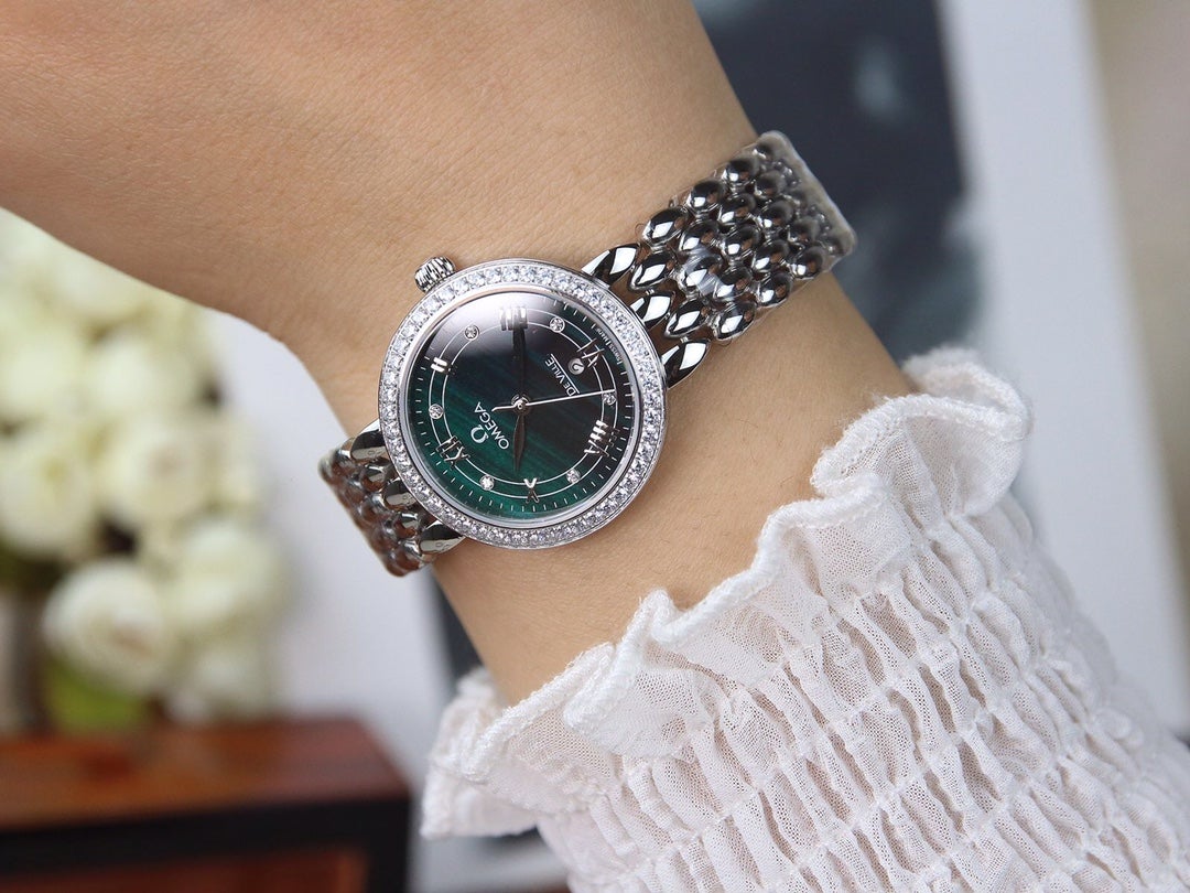 DEVILLE LADYMATIC 29MM STEEL BLUE DIAL DIAMOND BEZEL