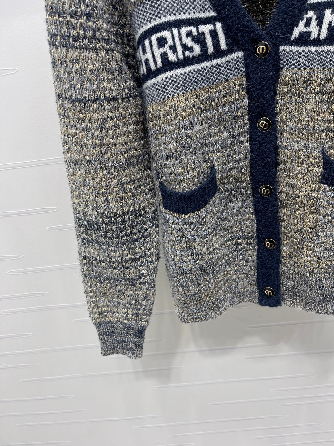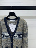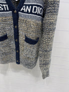 Dior 2025 V-neck Cardigan Beige mix Navy Blue Wool 321292