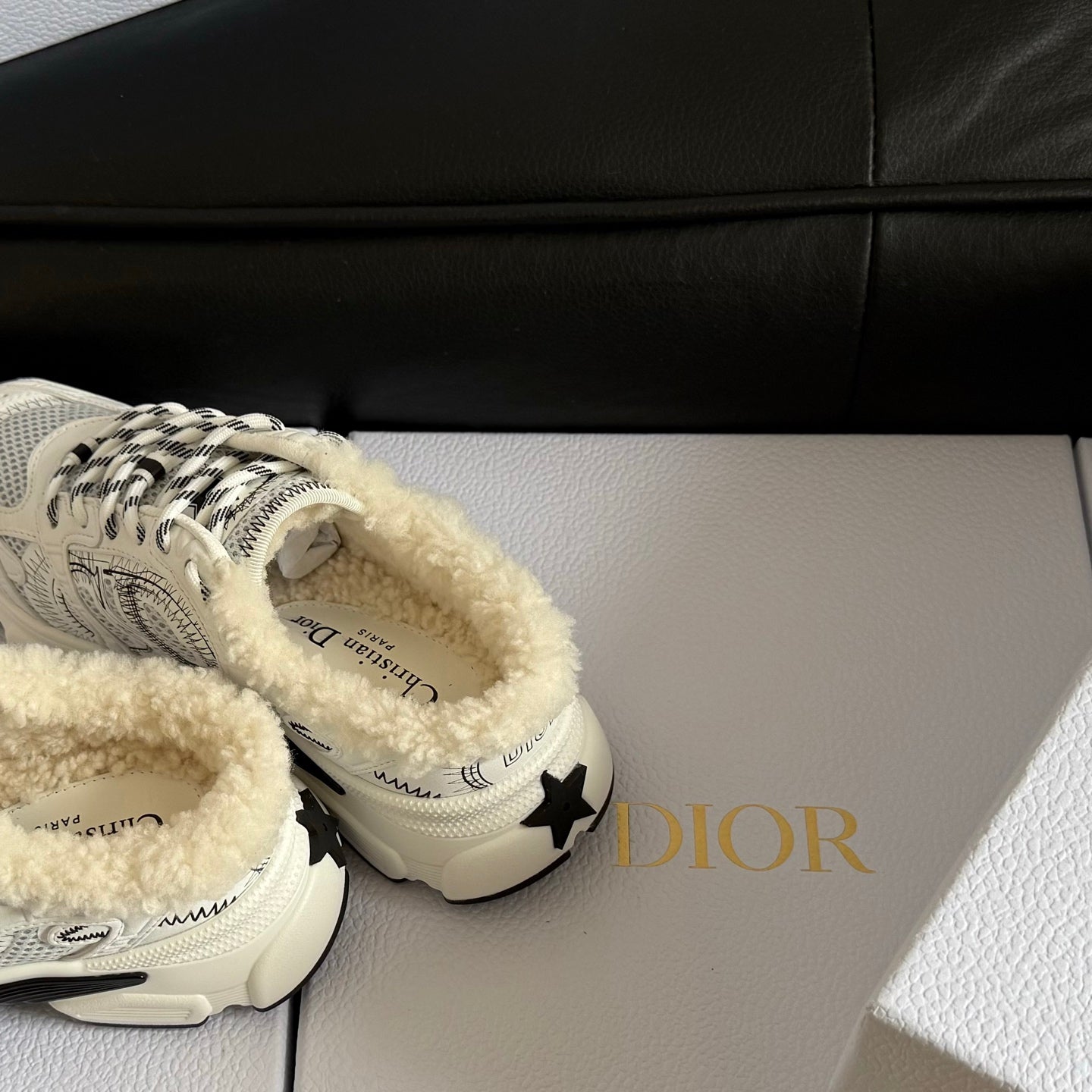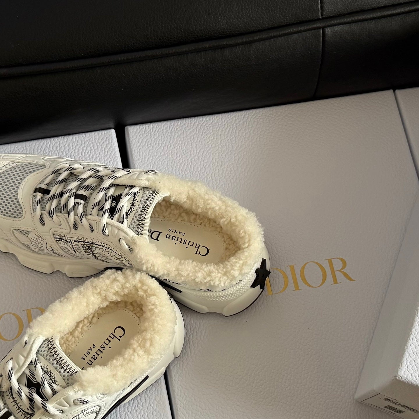 Dior 25 Chrono Sneakers Cream Black Mesh Calfskin 531390