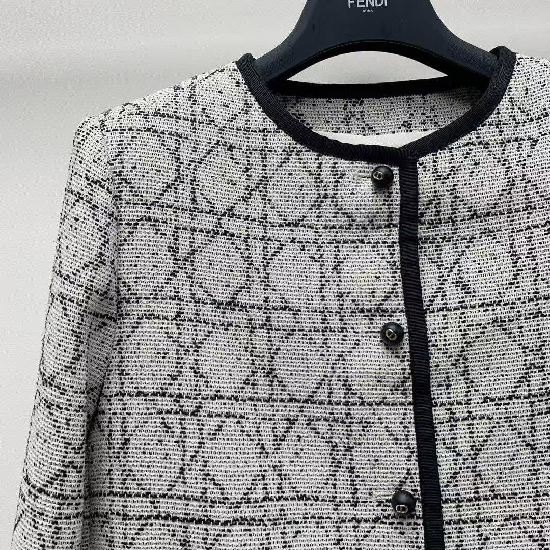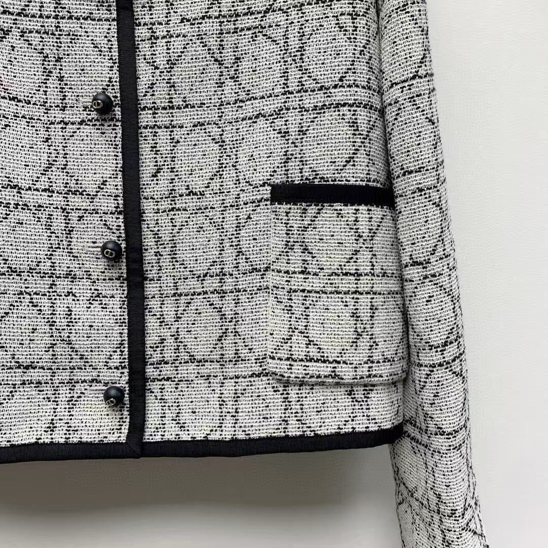 Dior Tweed Jacket Gray Black Cotton Polyester