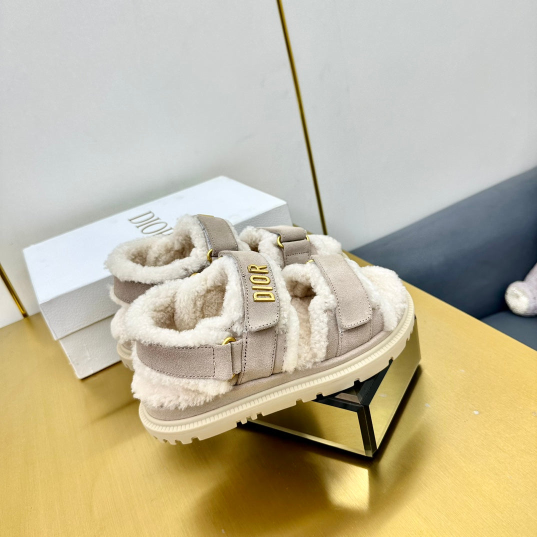 Dioract Sandal In Light Grey Suede And Wool Fleece Lining 111044