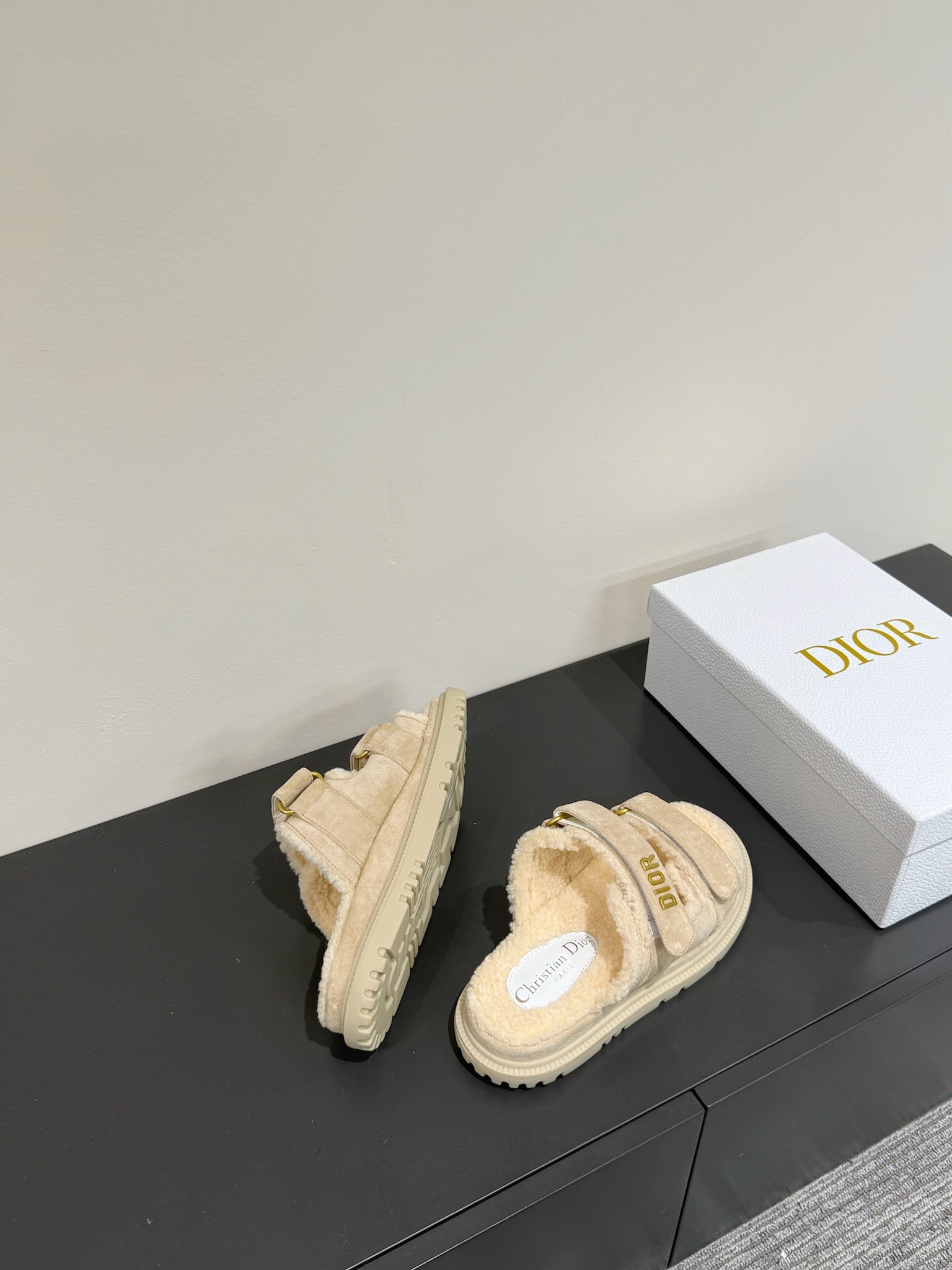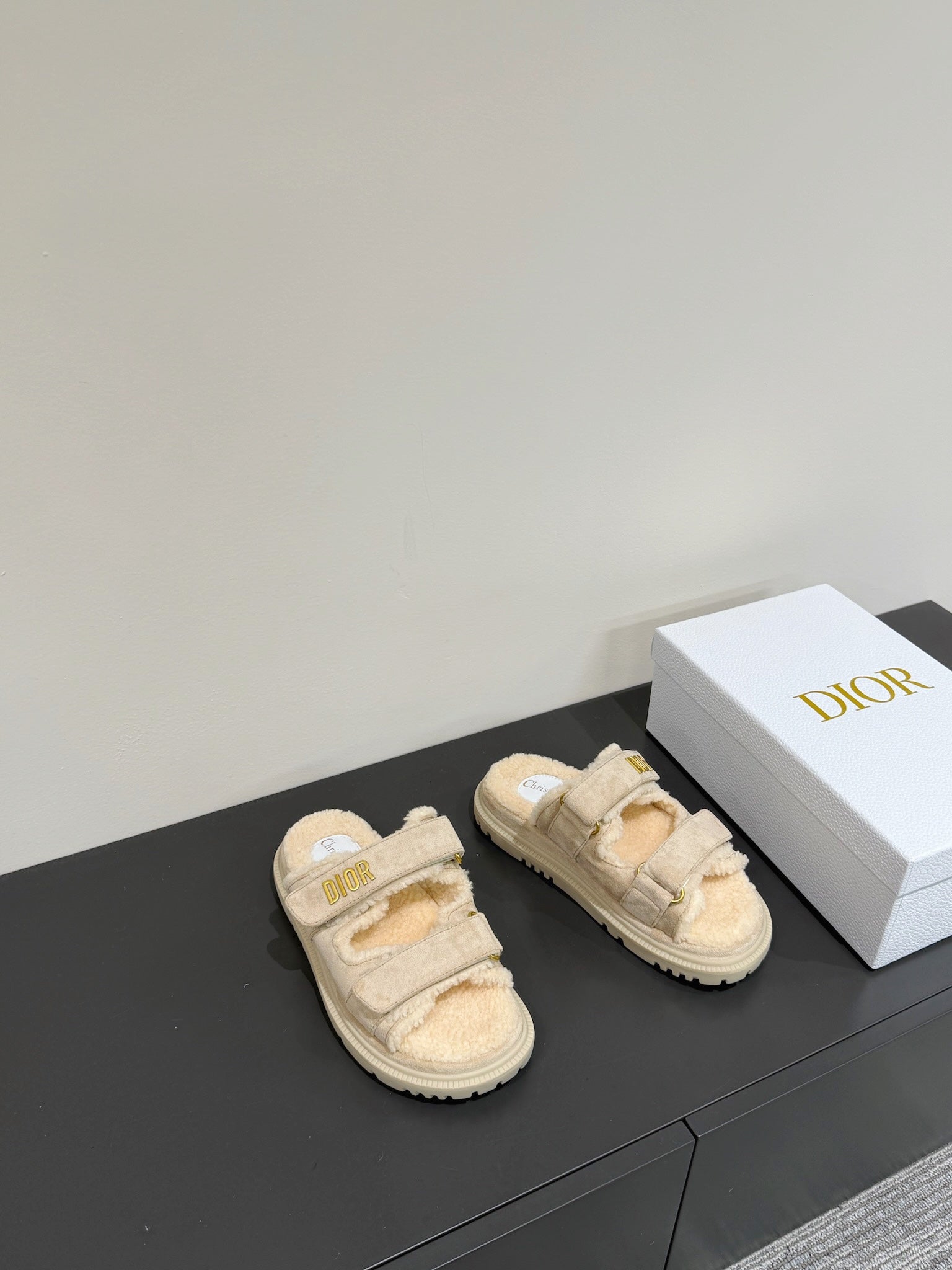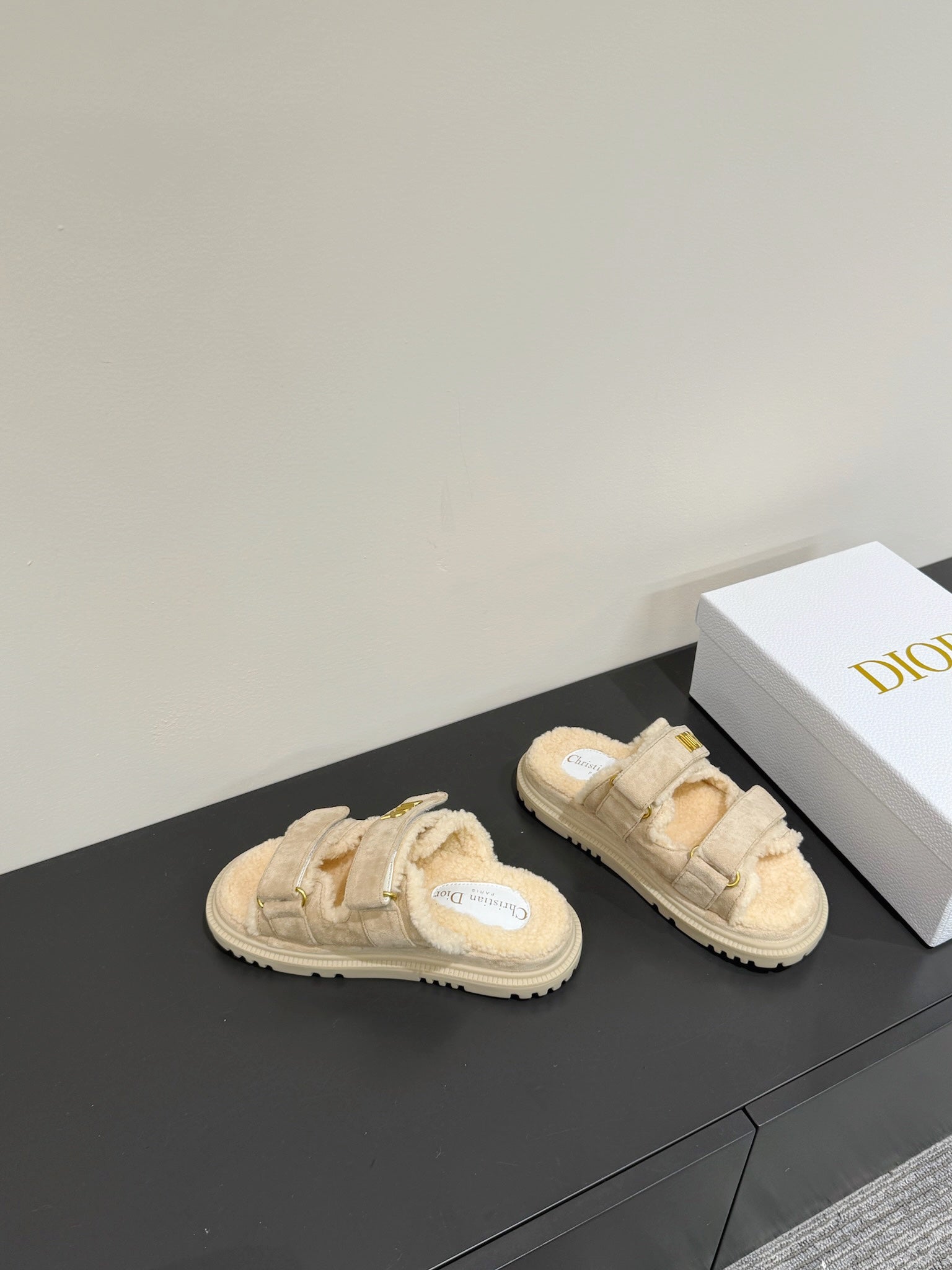 Dioract Slide In Light Grey Suede And Wool Fleece Lining 109879