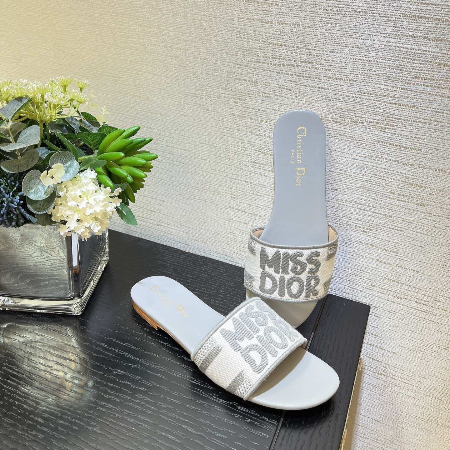 dway slide embroidered grey cotton