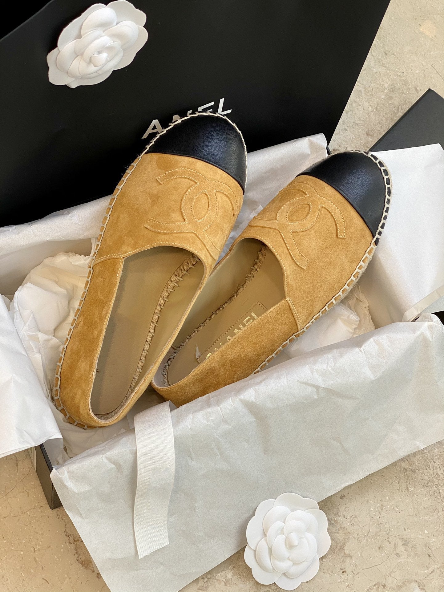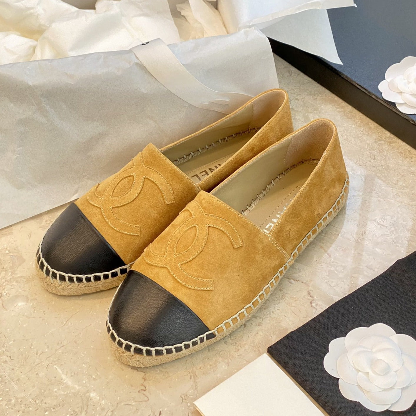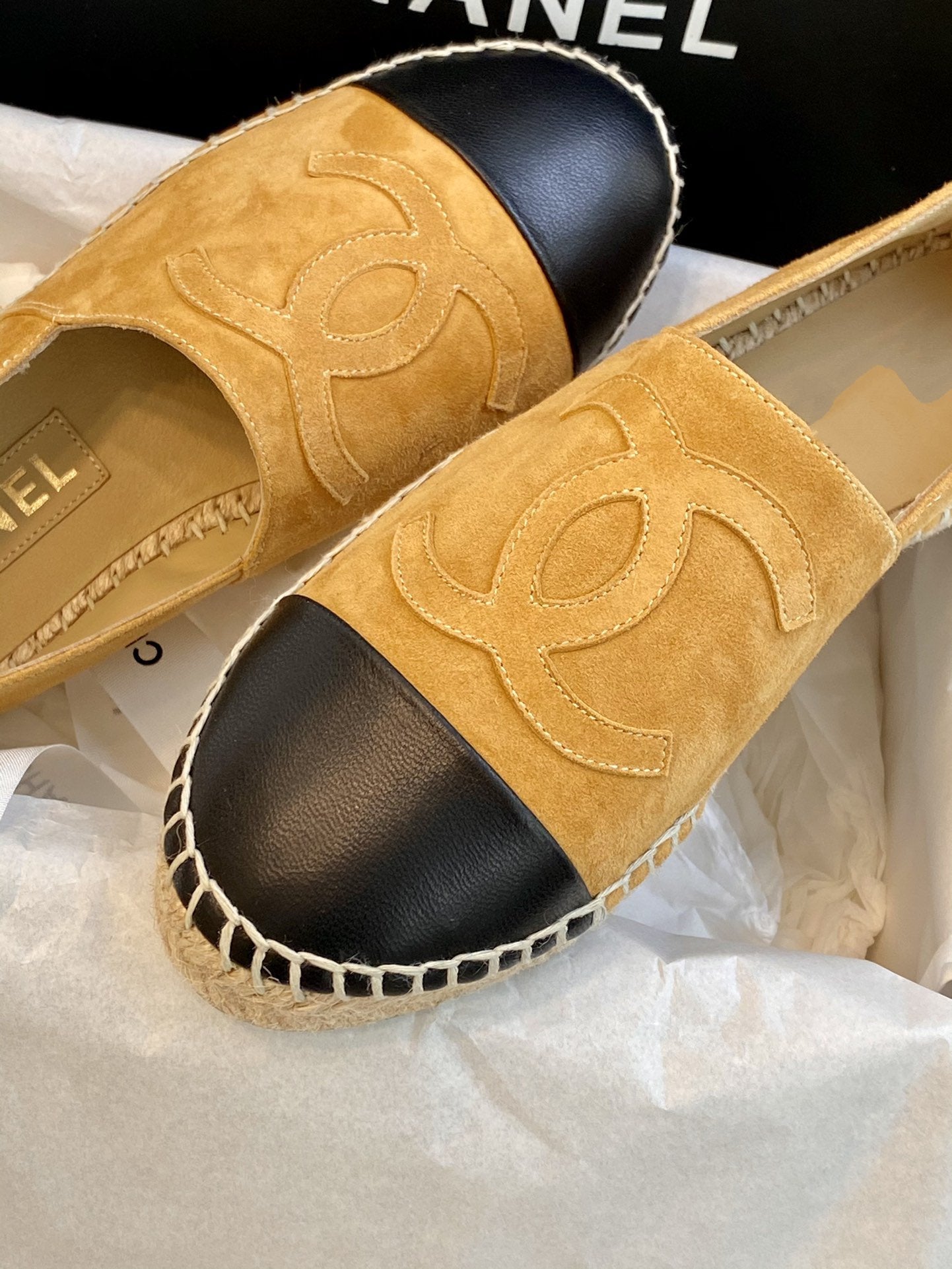 espadrilles dark beige suede black lambskin