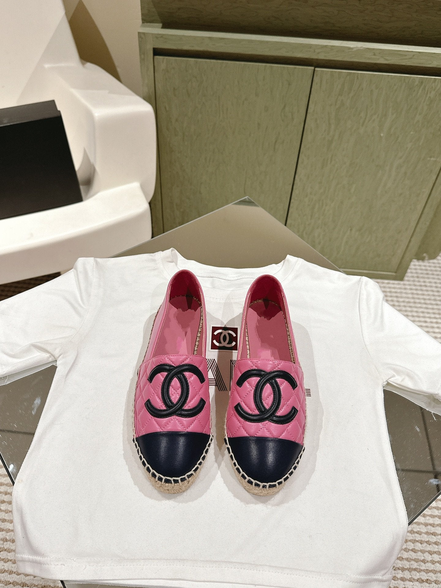 espadrilles pink black quilted calfskin