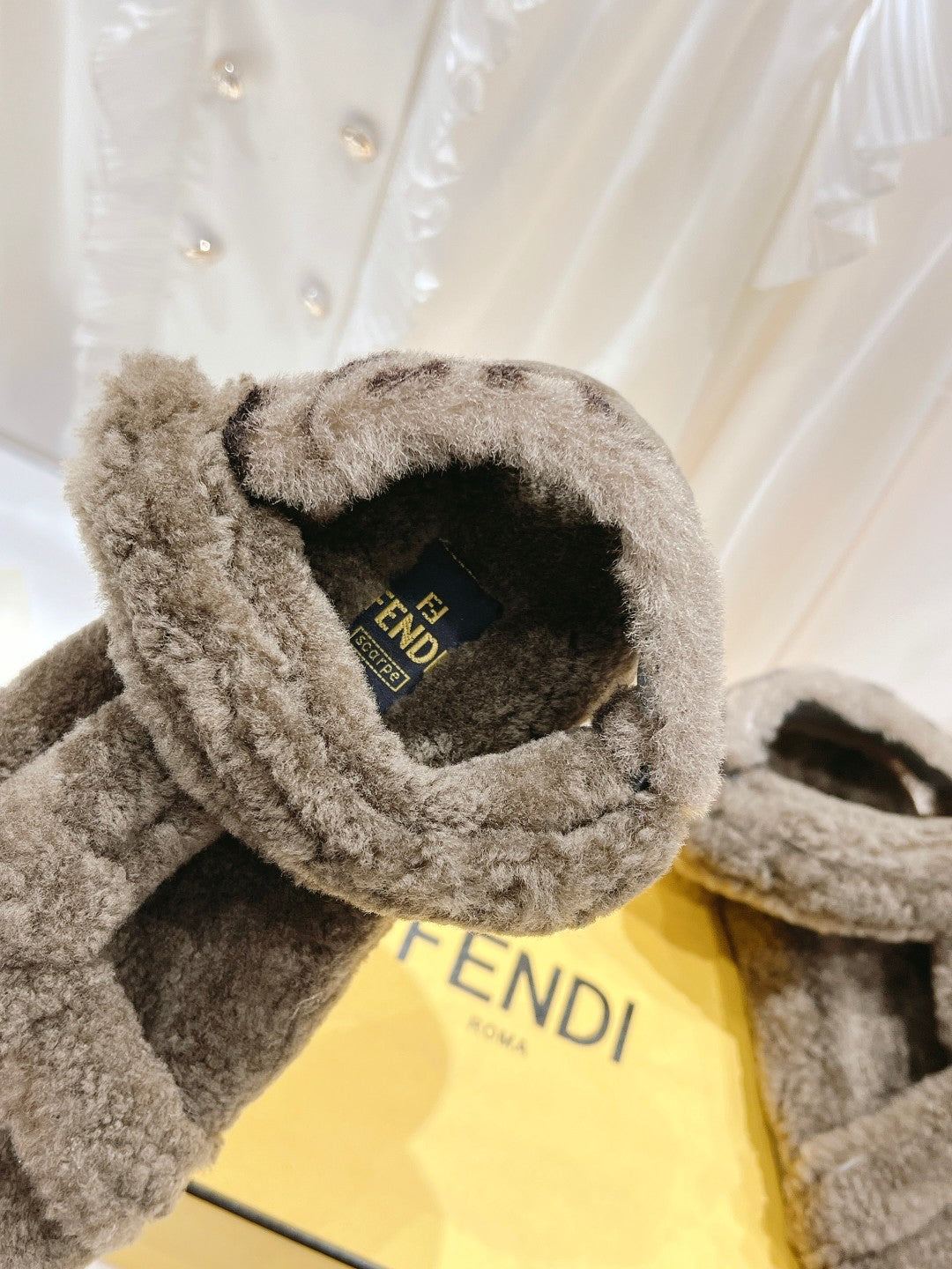 FENDI DAD SANDAL IN MOCHA BROWN FLEECE