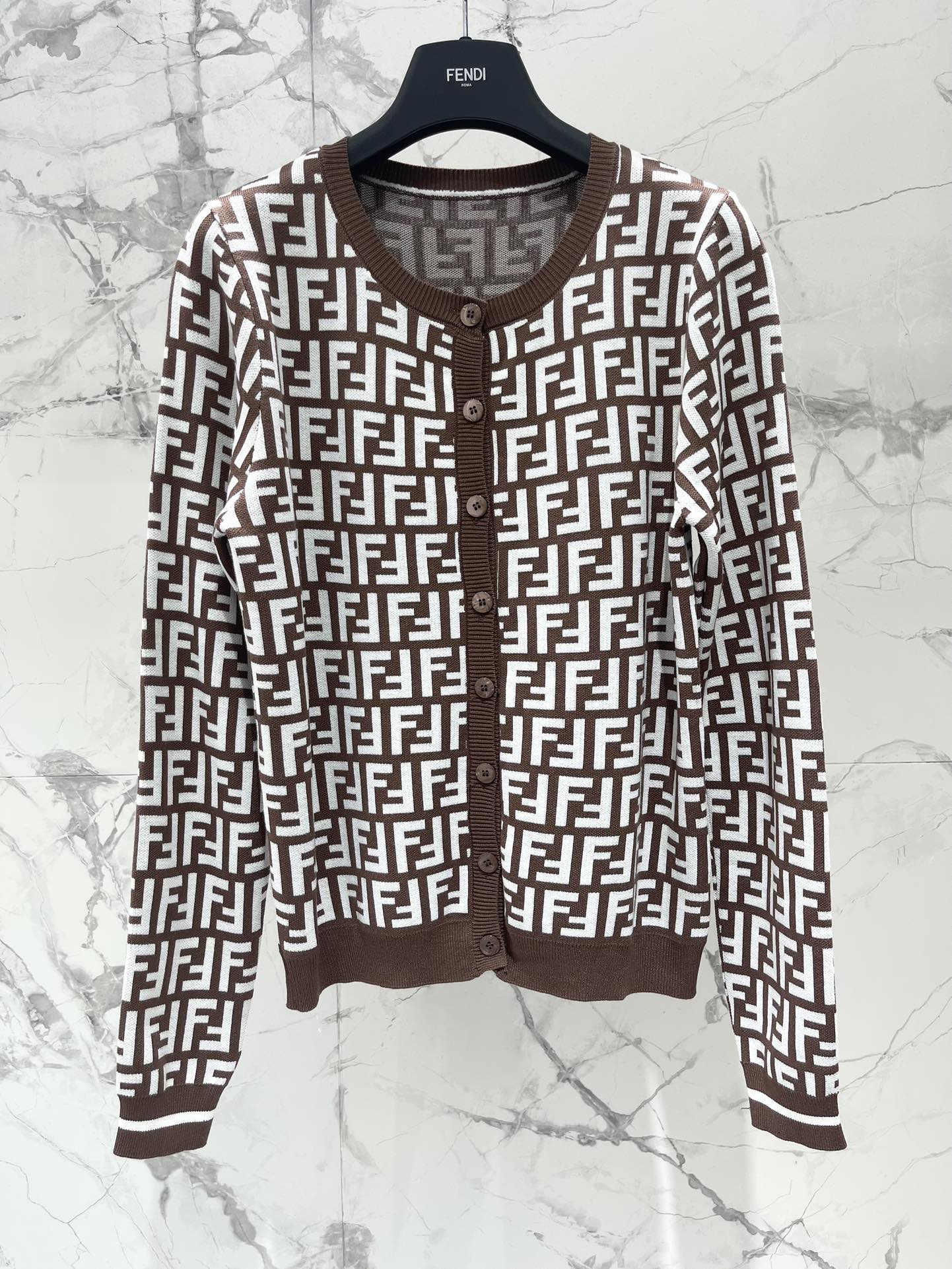Fendi Double f Letter Knitted Cardigan Brown Wool