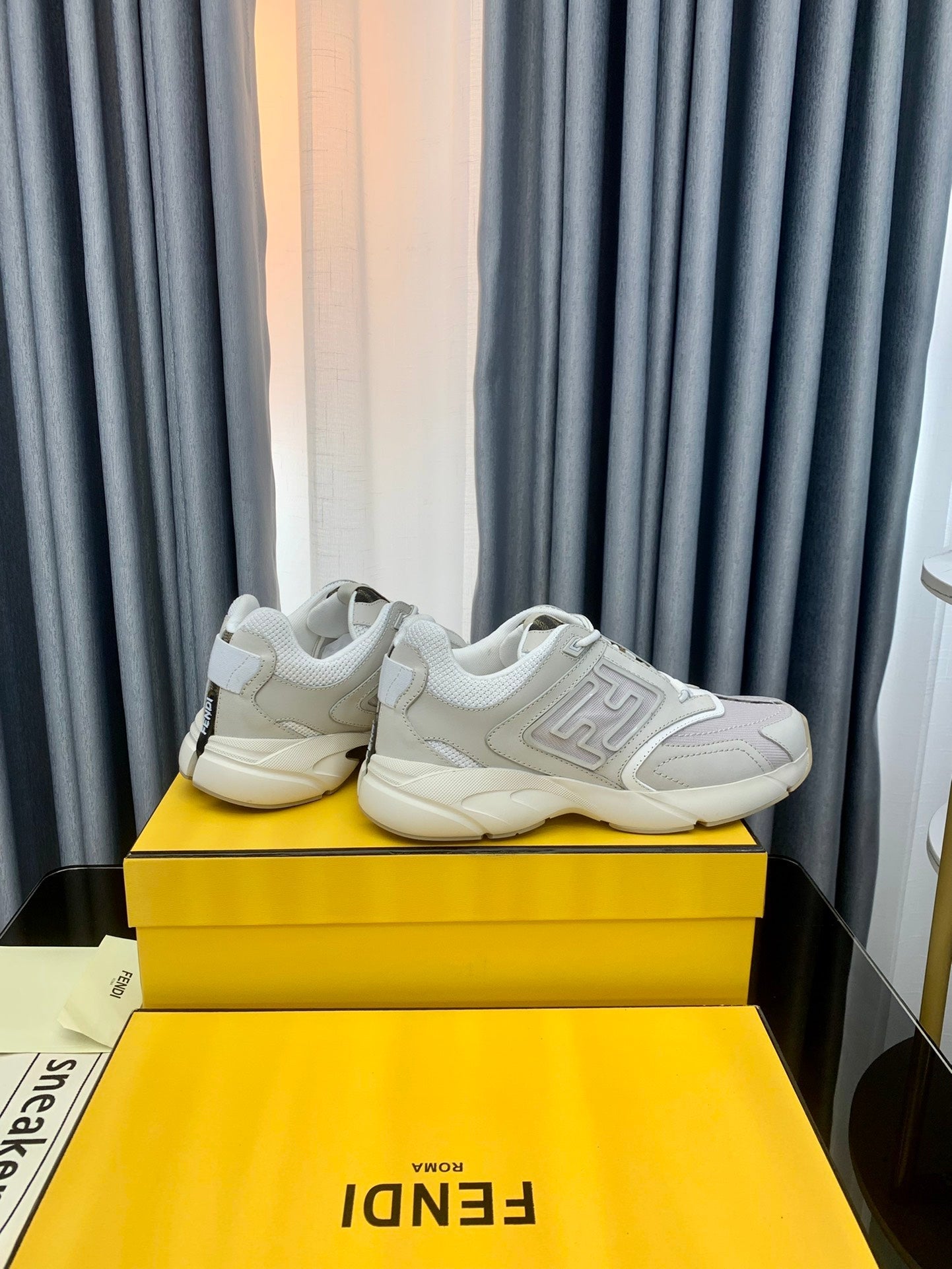 FENDI FASTER TRAINER IN GREY CALFSKIN AND SUEDE