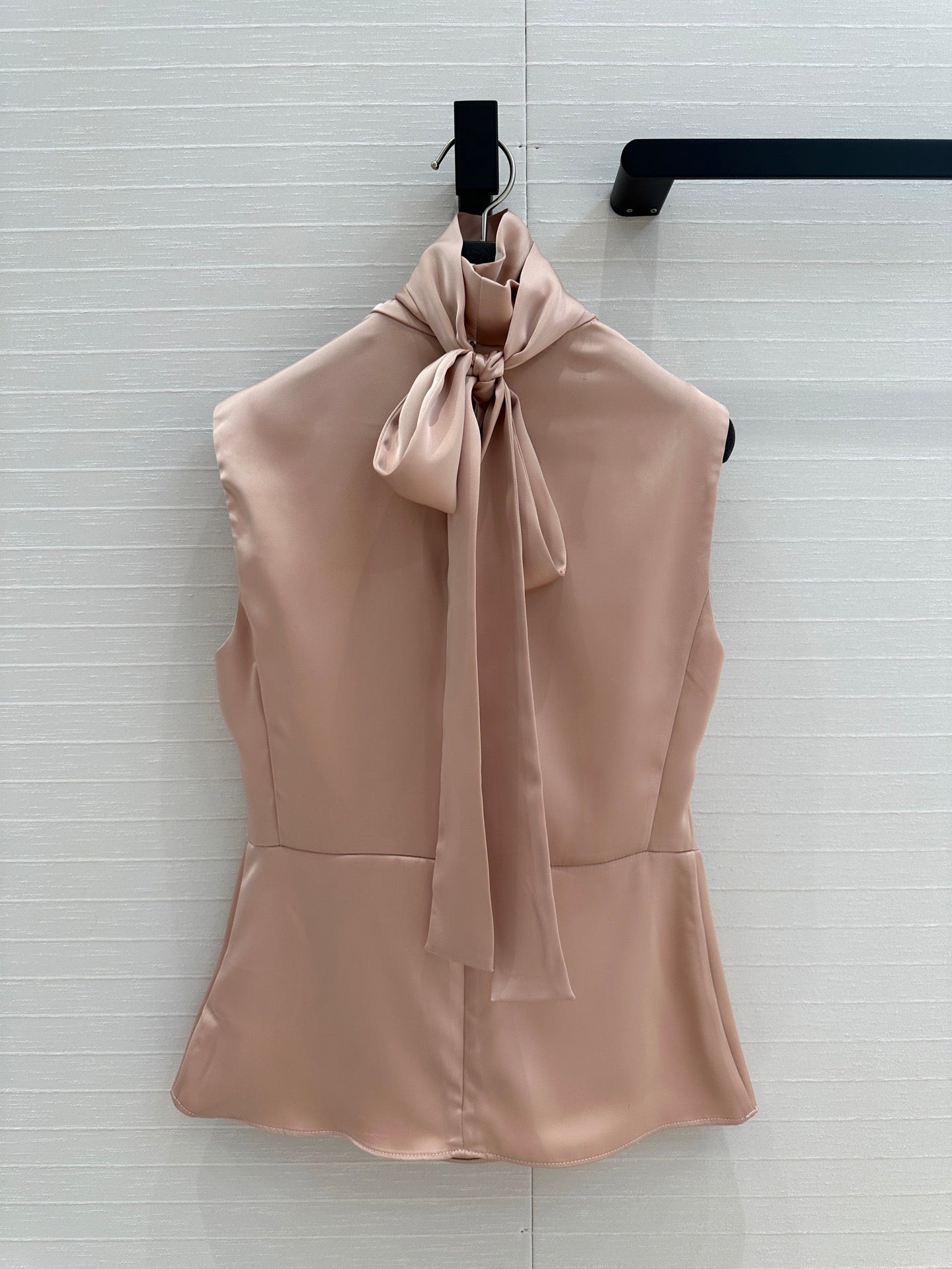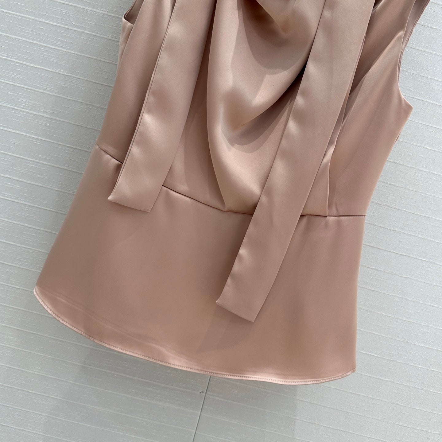 Fendi Long Ribbon Drape Waisted Top Pink Polyester