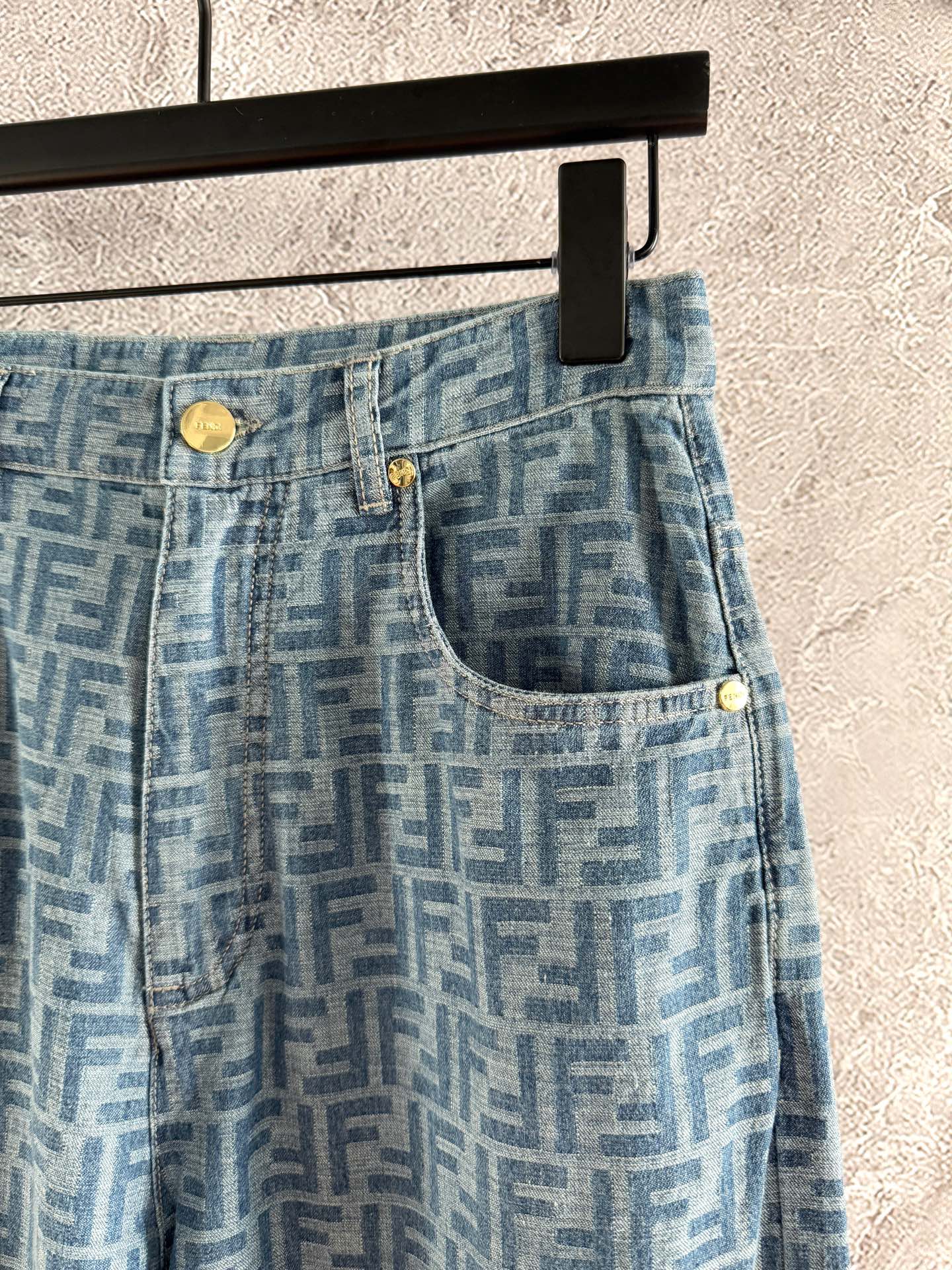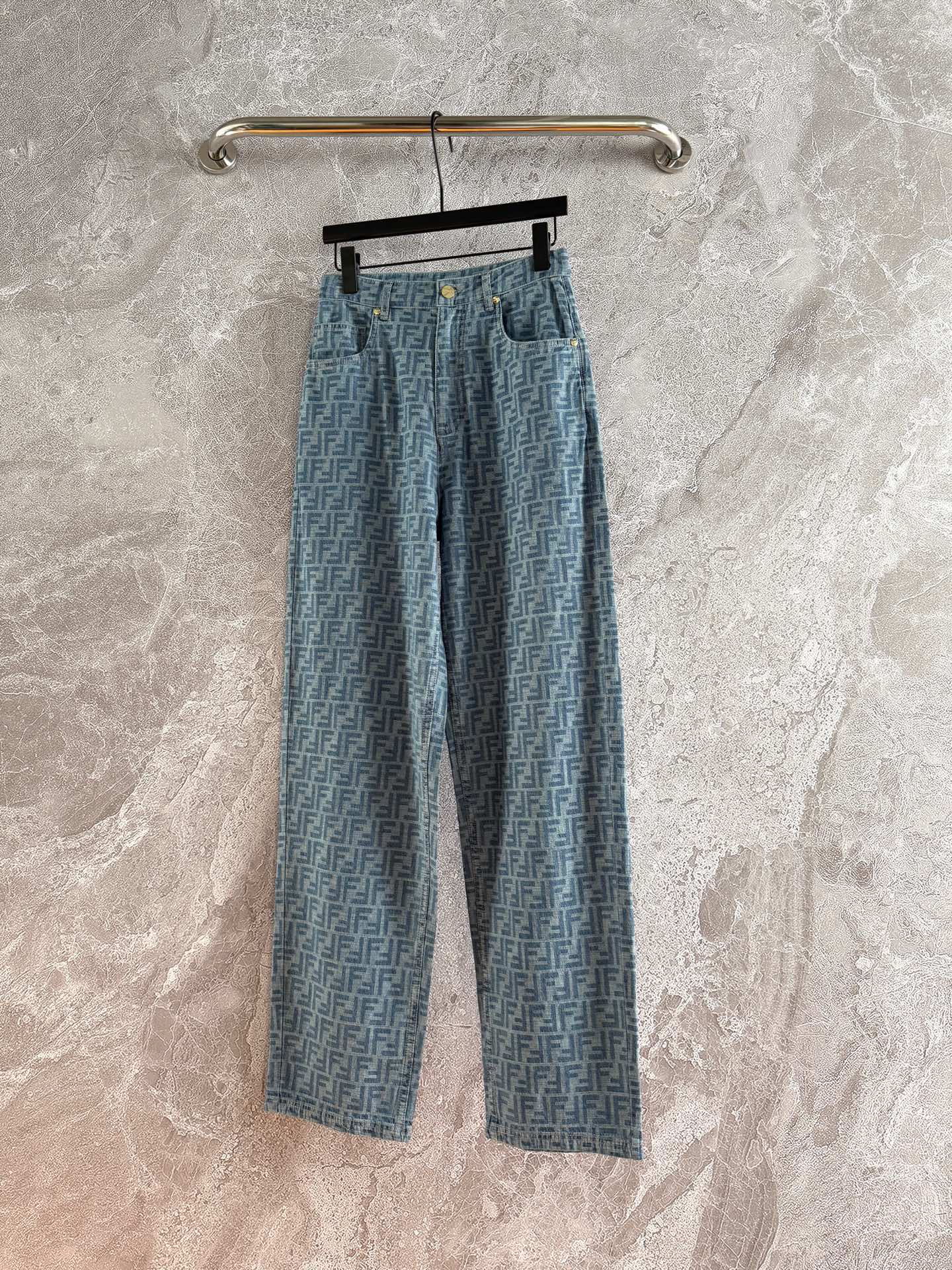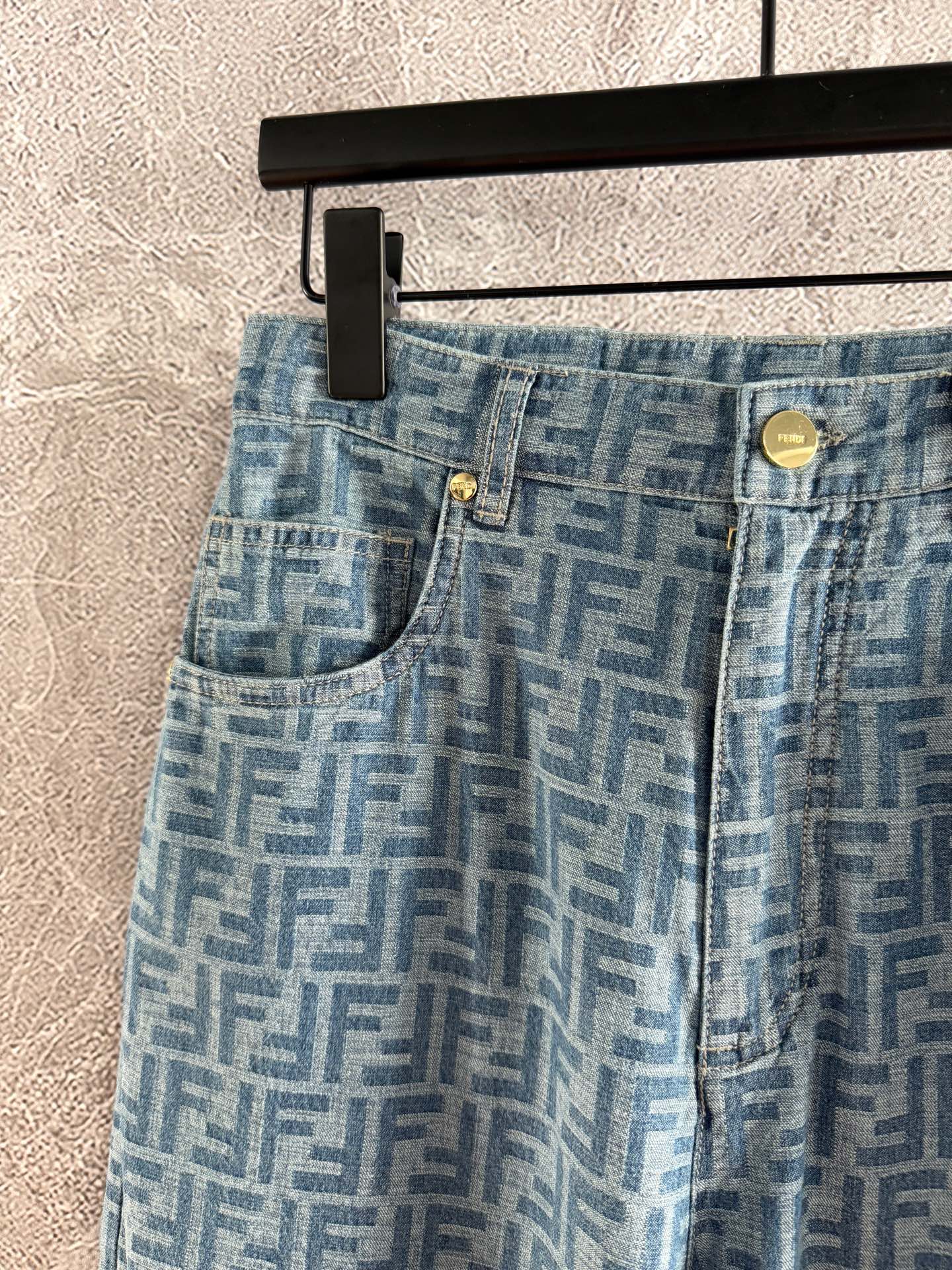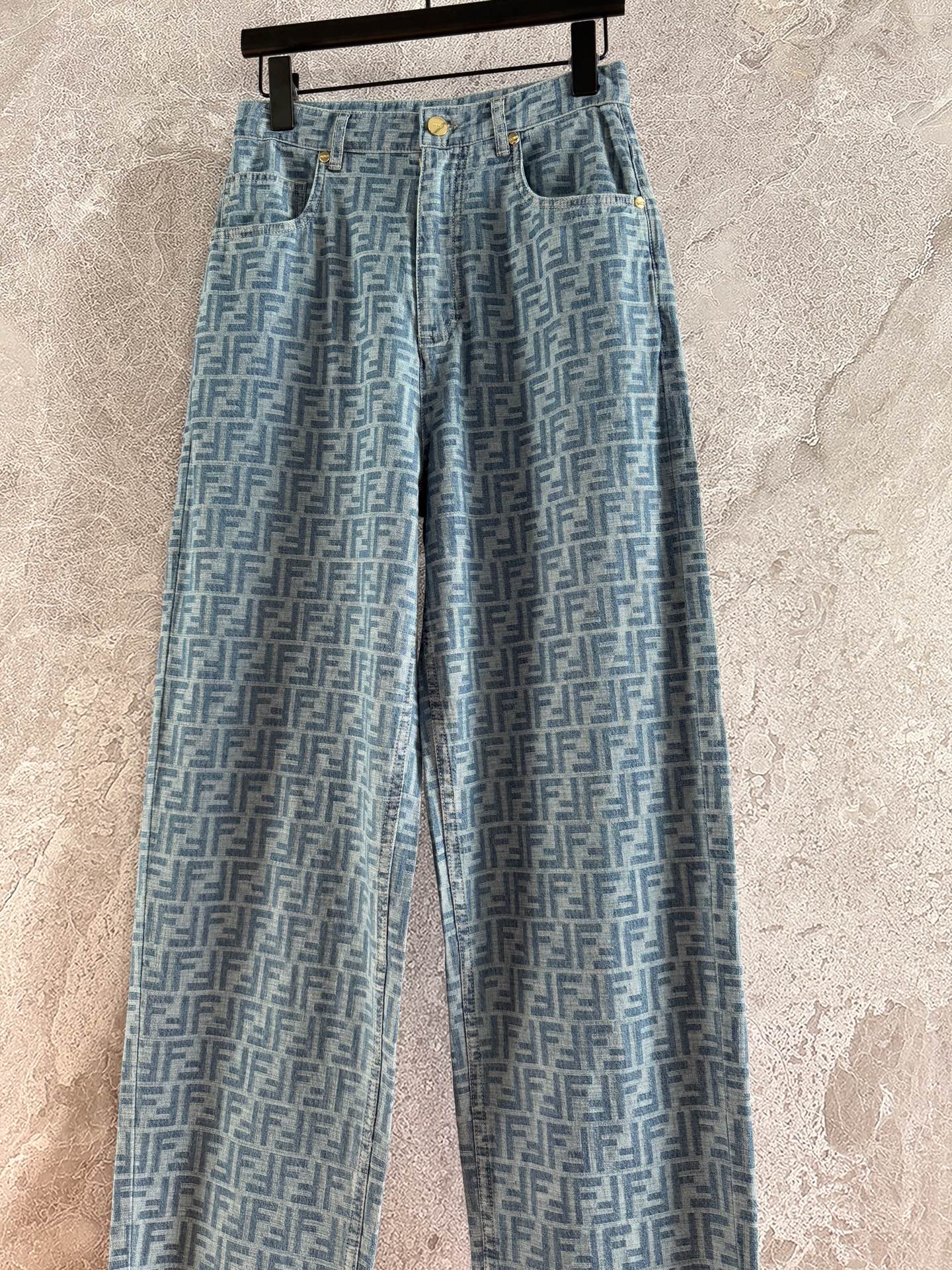 Fendi Old flower jeans Blue Gray Cotton Linen