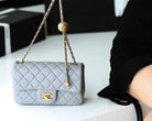 FLAP BAG 20CM GREY LAMBSKIN GOLD HARDWARE
