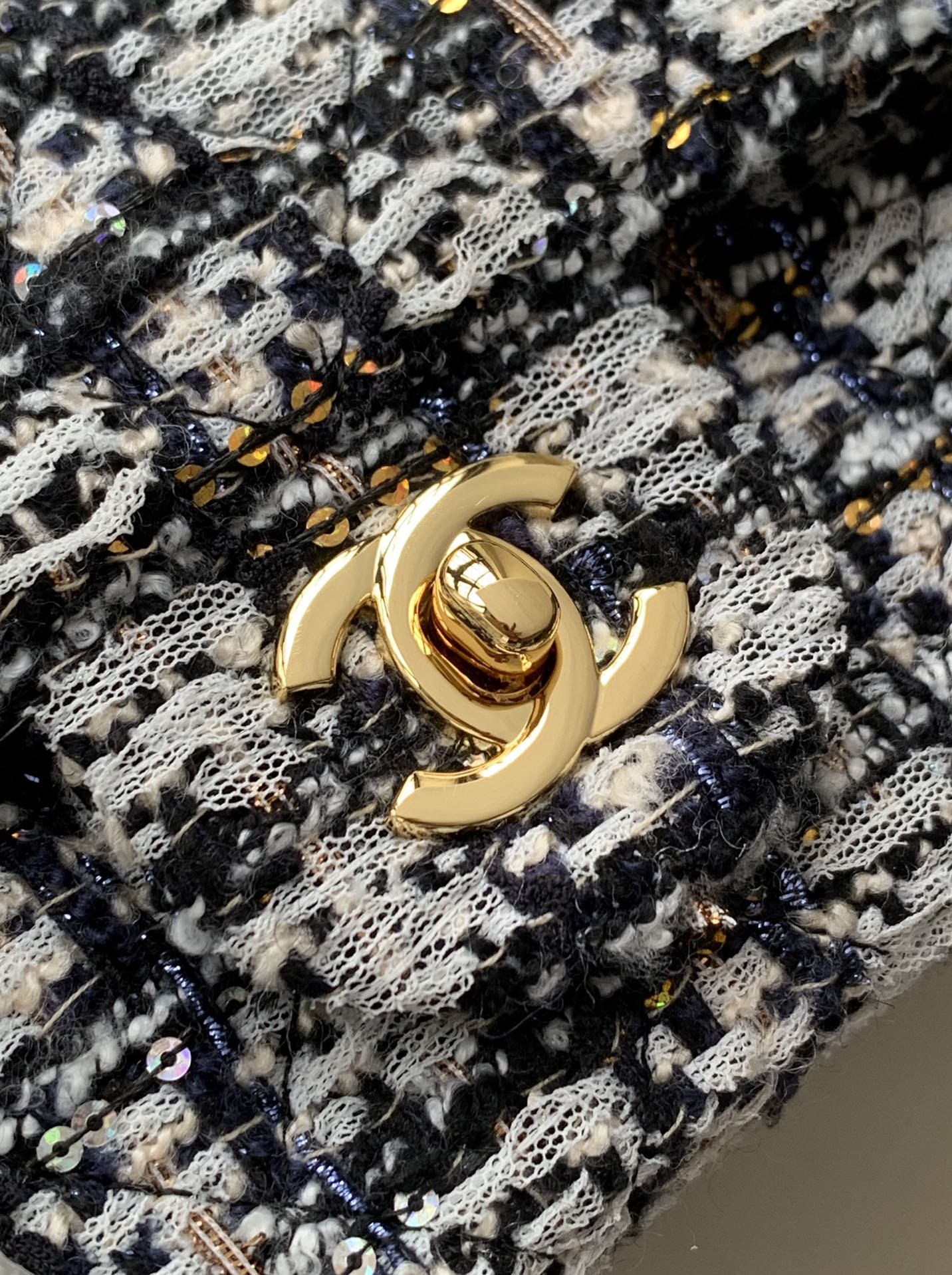 Flap Bag Mini 20cm Black White Tweed Sequin