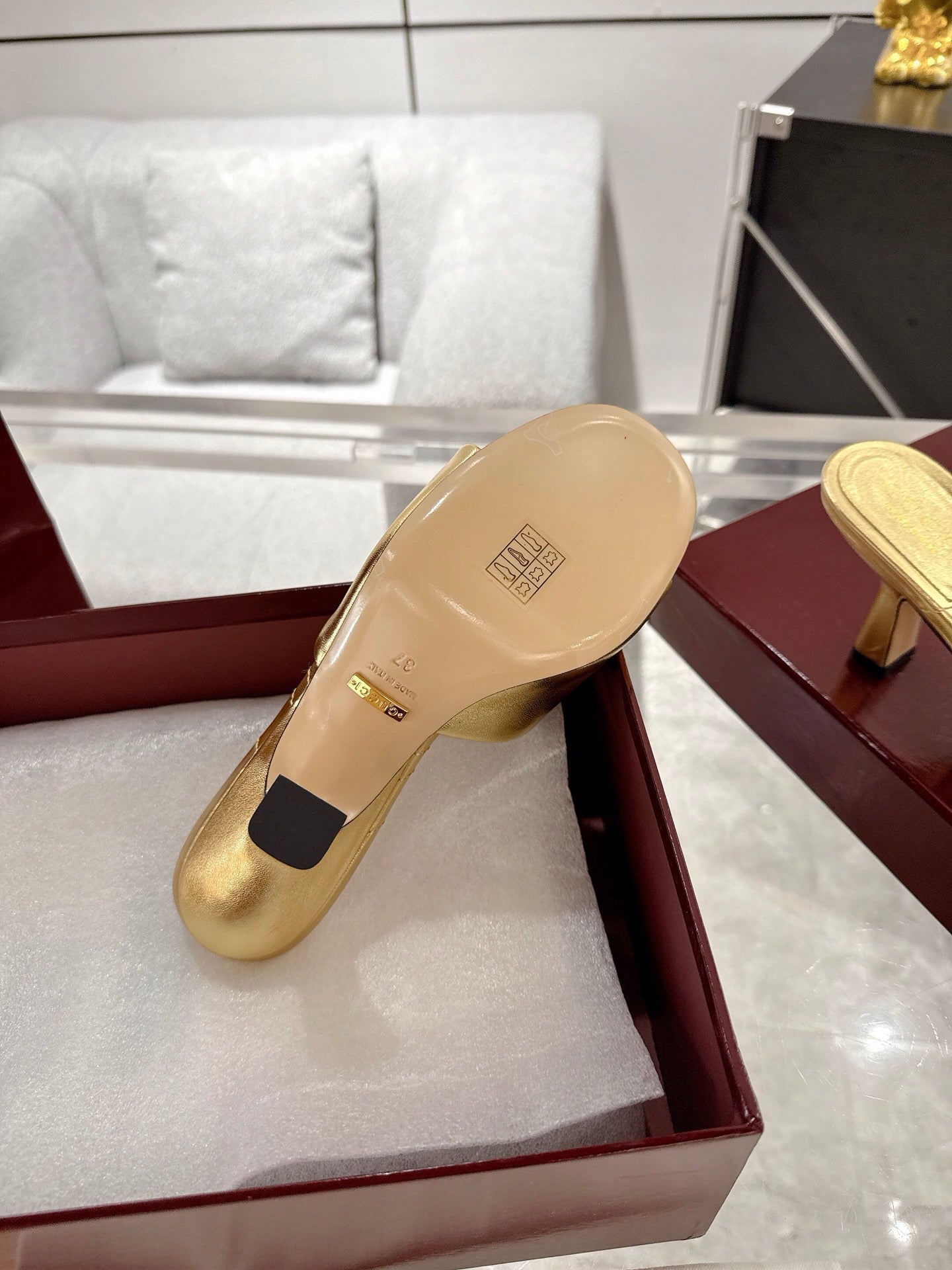 GC 2025 Double G High Heel Sandals Gold Sheepskin 292472
