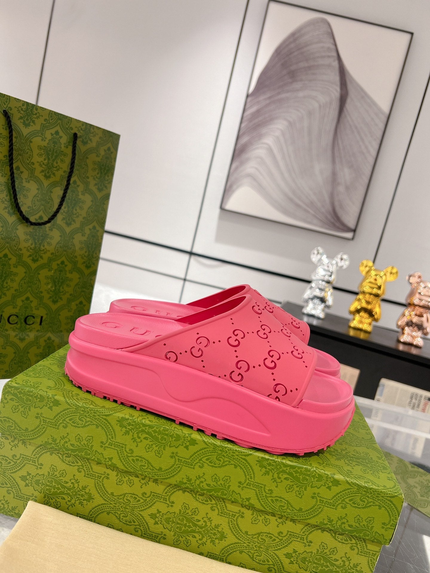 GC 25 50mm Monogram Slide Sandal Pink Cowhide 292396
