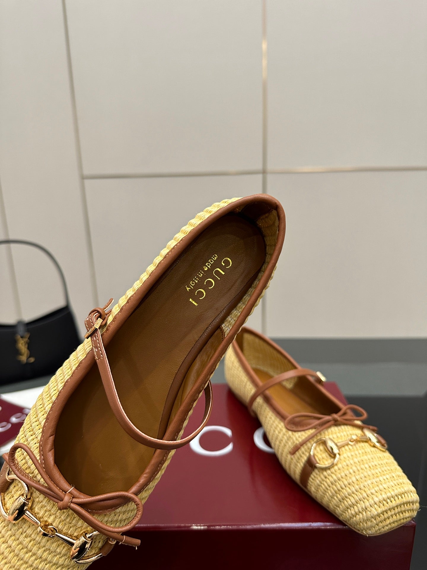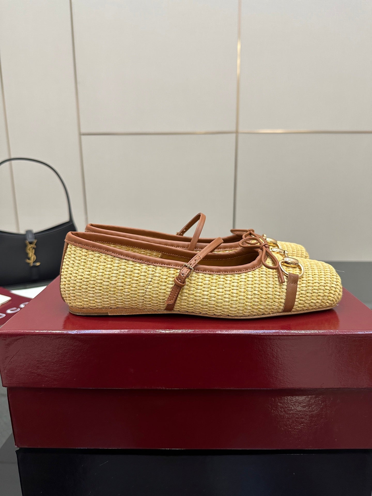 GC 25 Horsebit Ballet Flat Beige Raffia