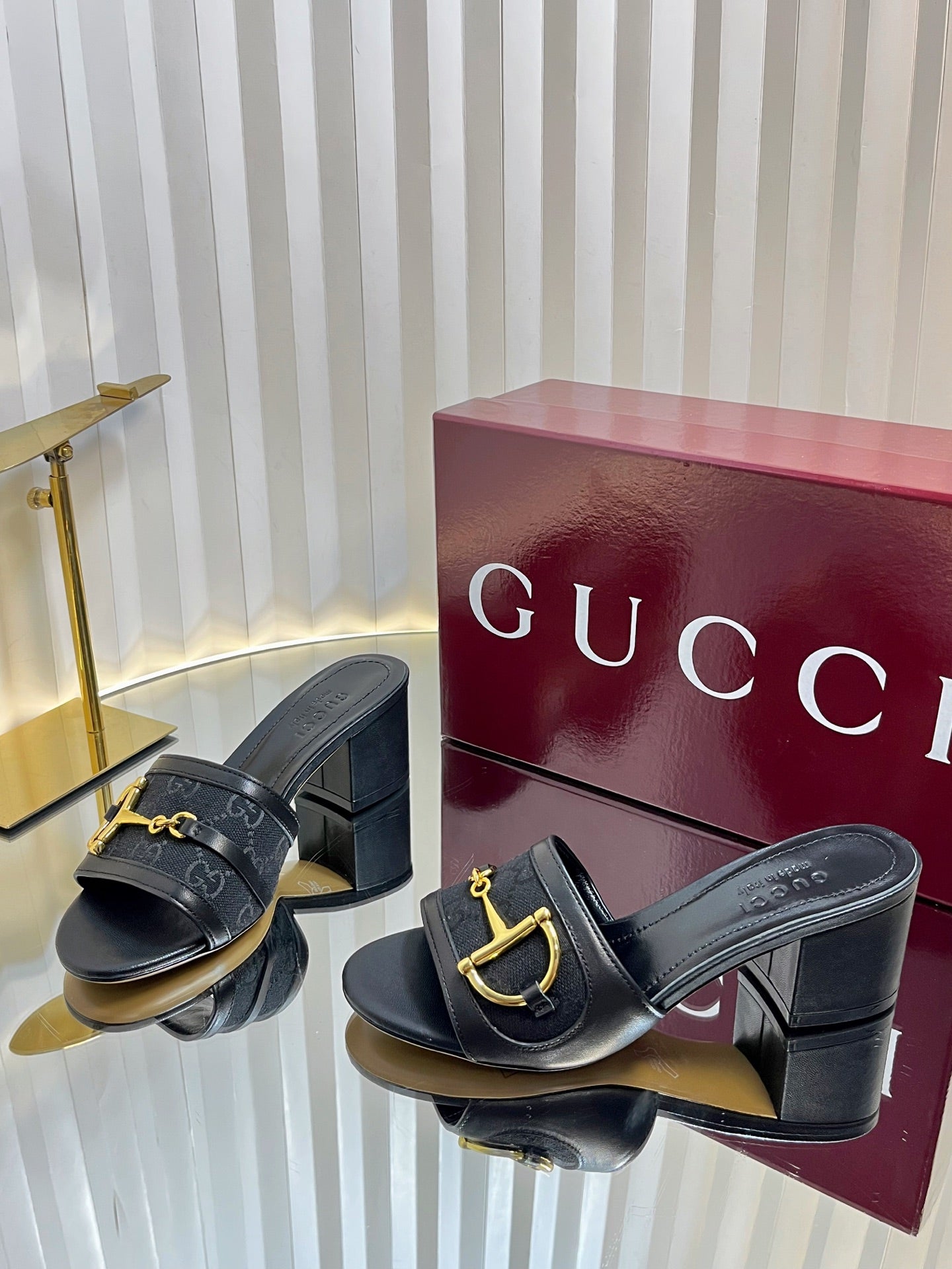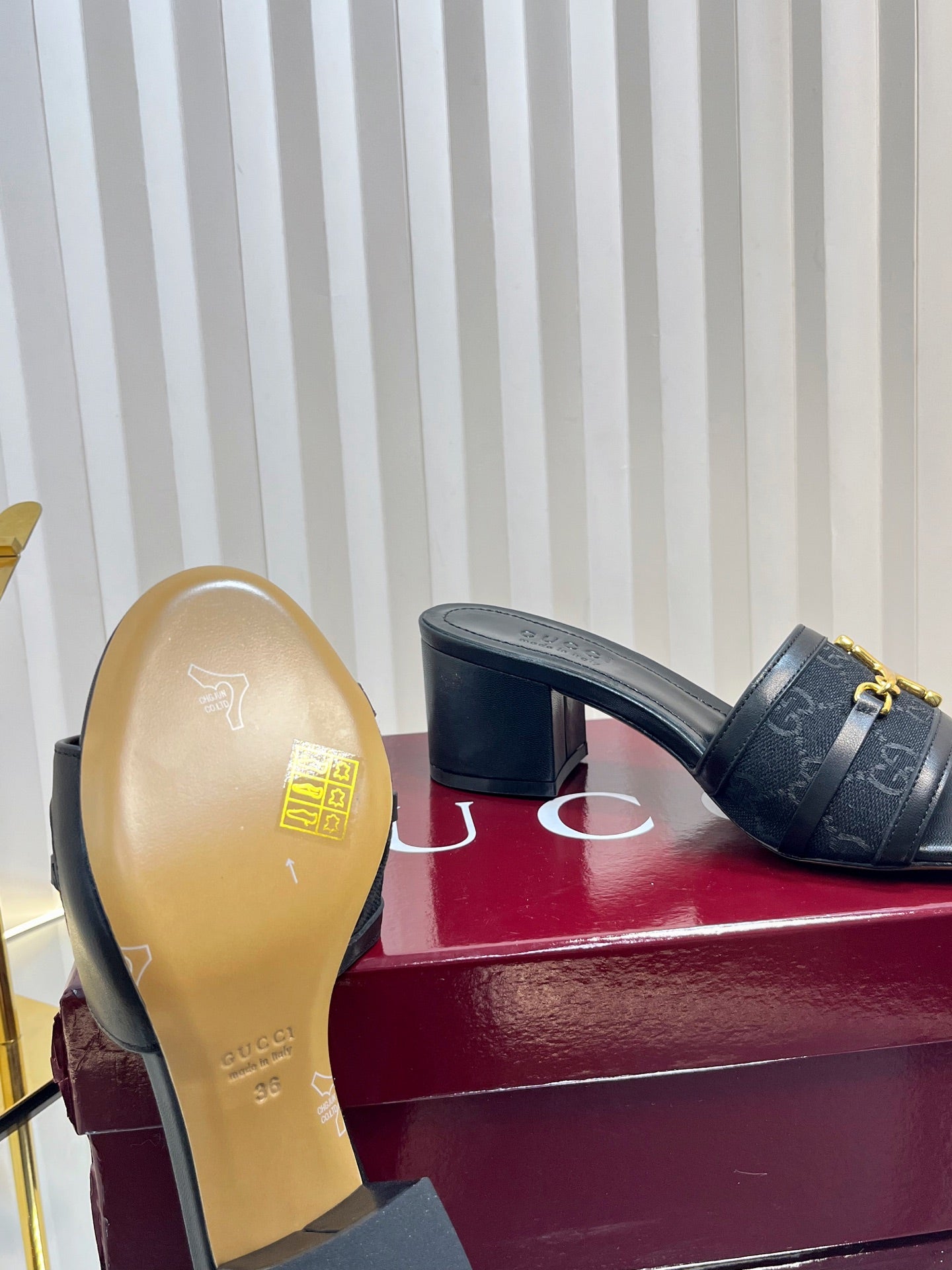 GC 25 Horsebit GG 50mm Sandals Black Canvas 294680