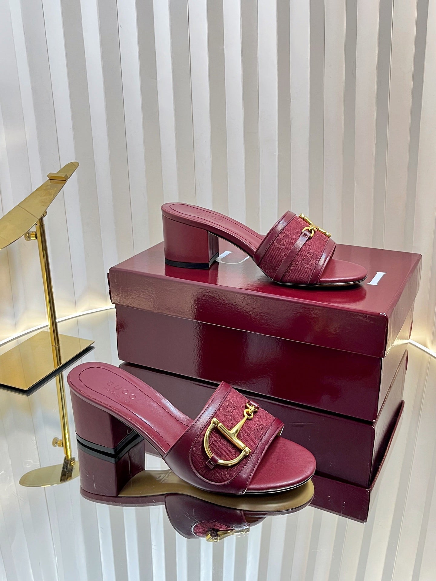 GC 25 Horsebit GG 50mm Sandals Red Canvas 294677