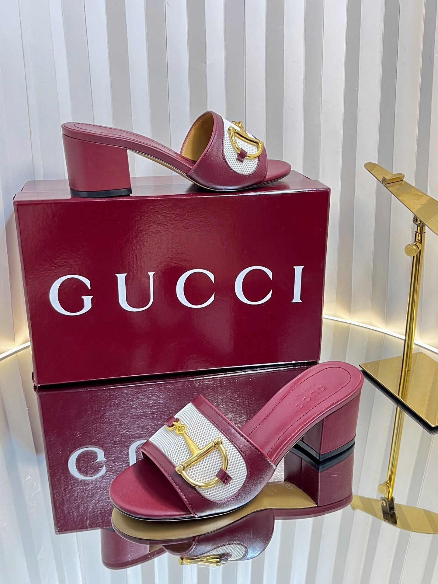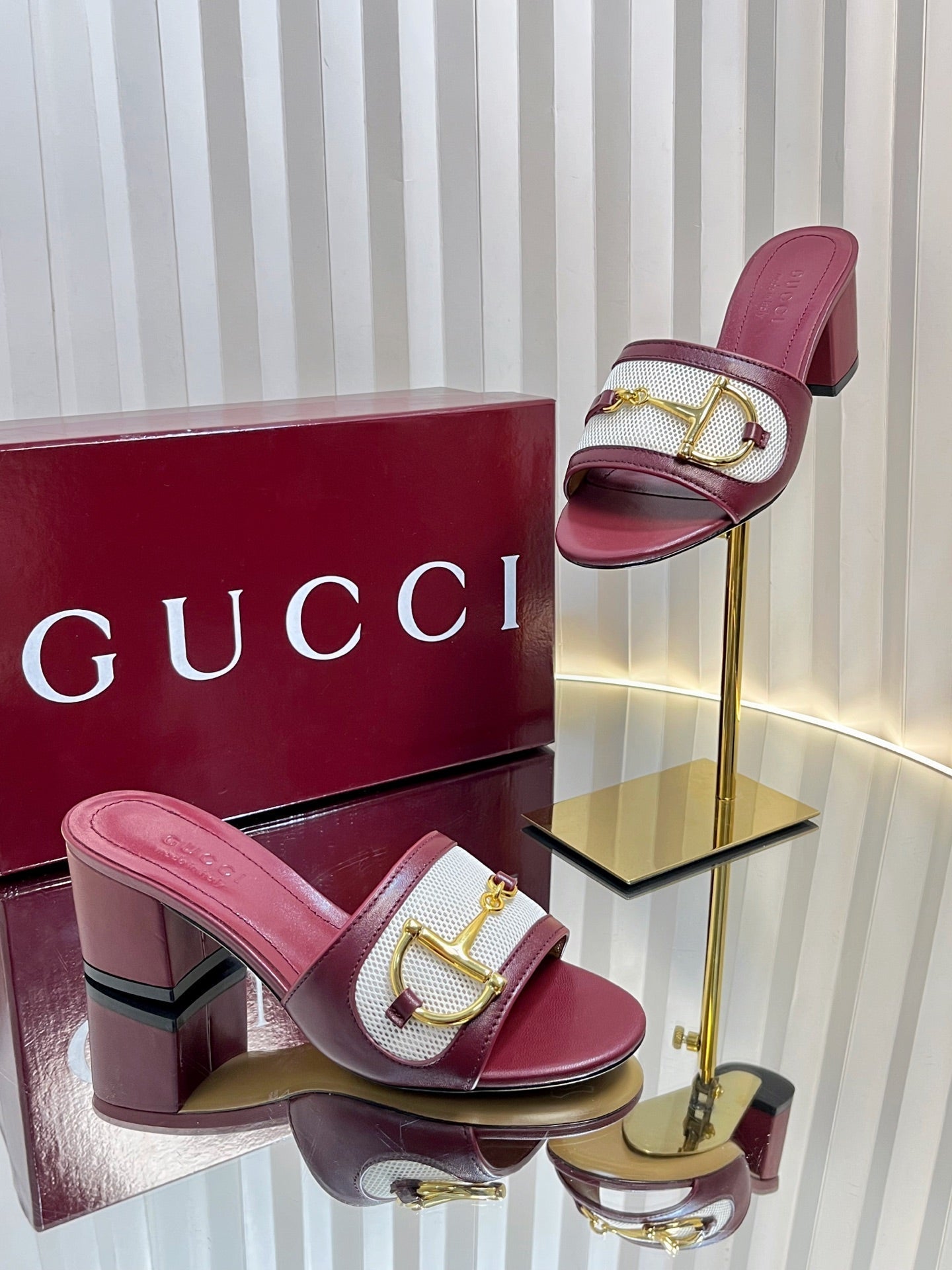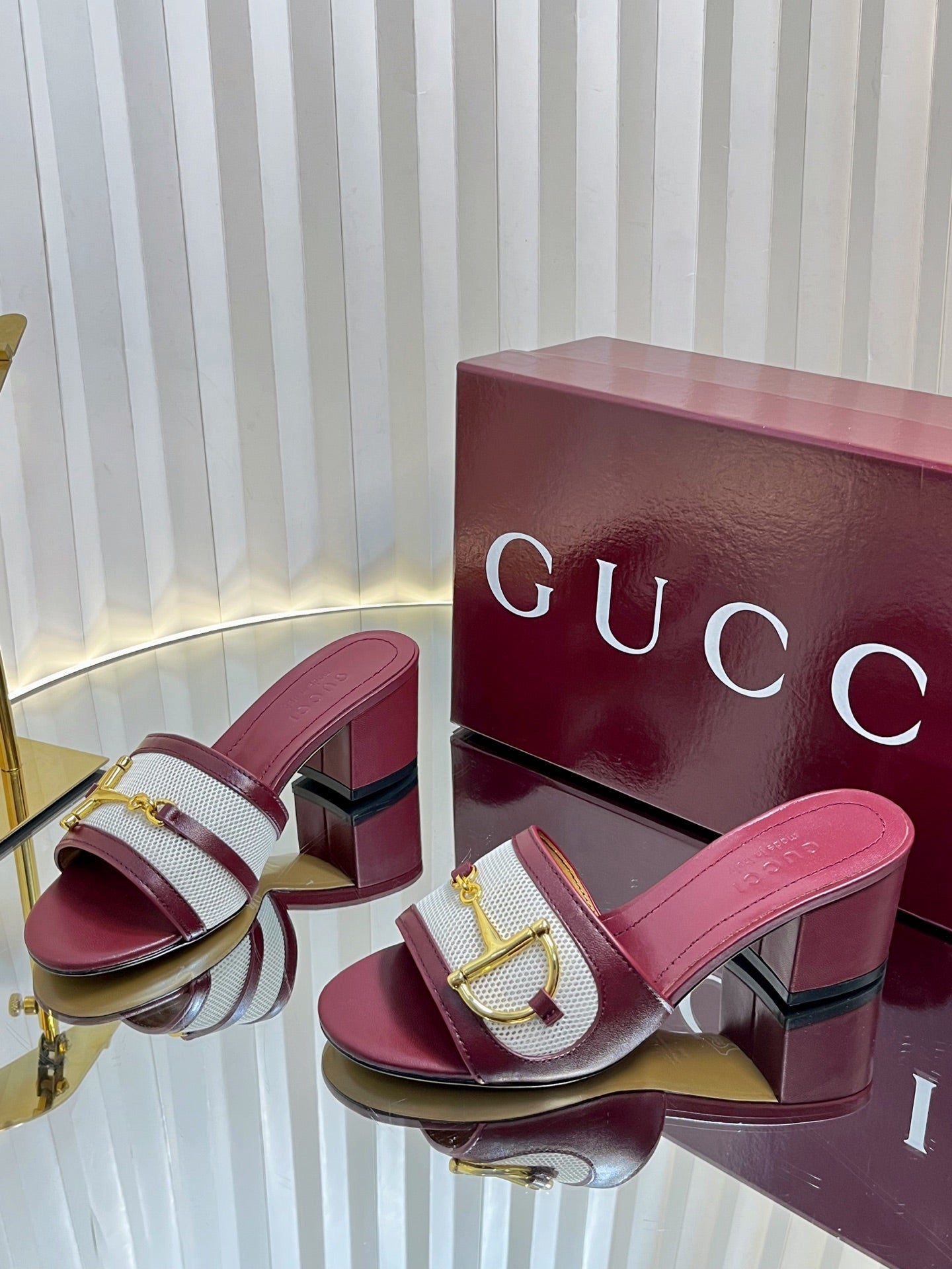 GC 25 Horsebit GG 50mm Sandals Red Canvas Sheepskin 294665