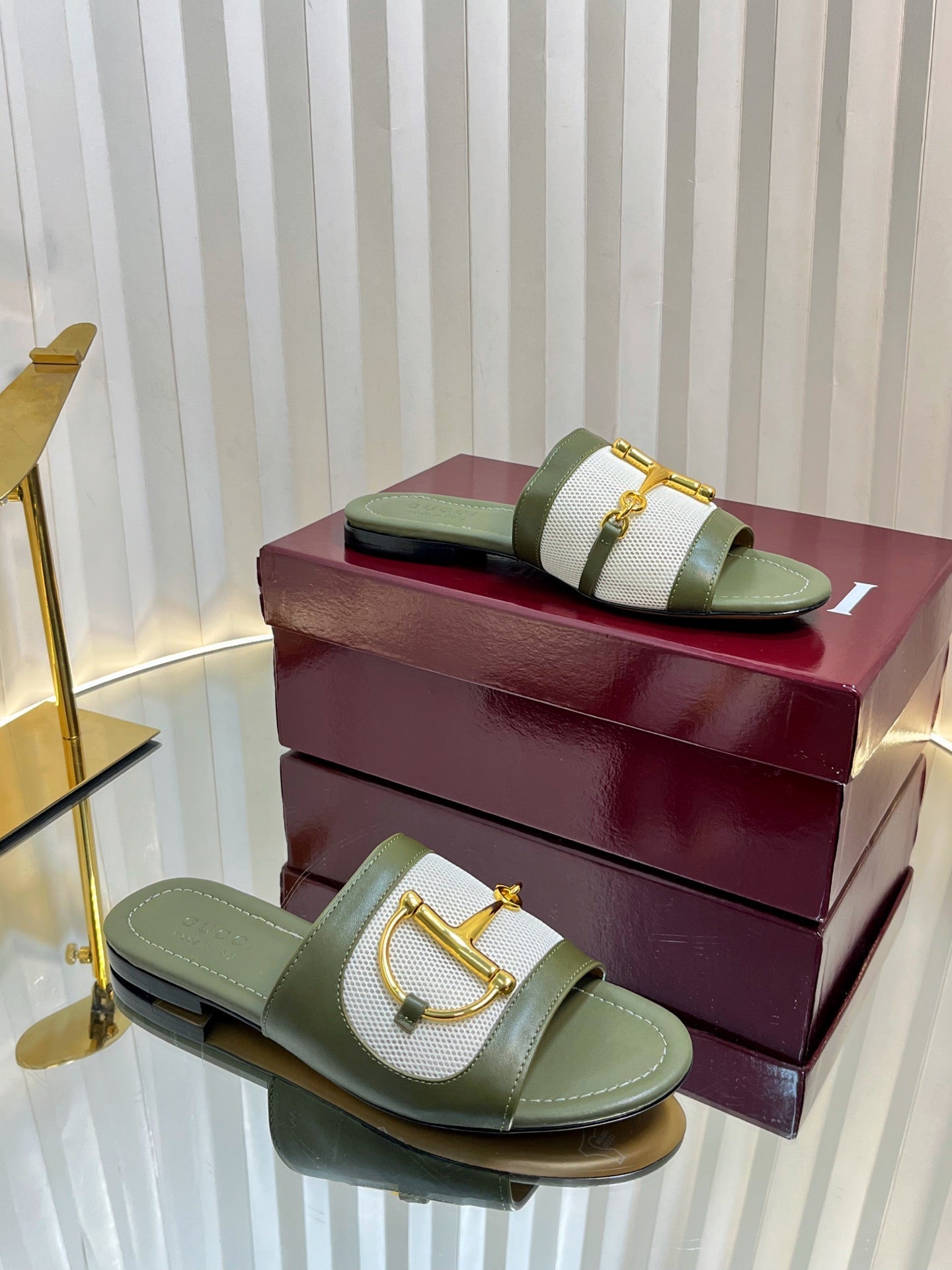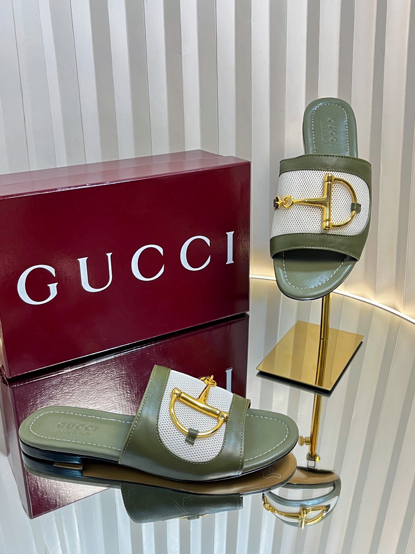 GC 25 Horsebit GG Sandals Dark Green Canvas Sheepskin 294663