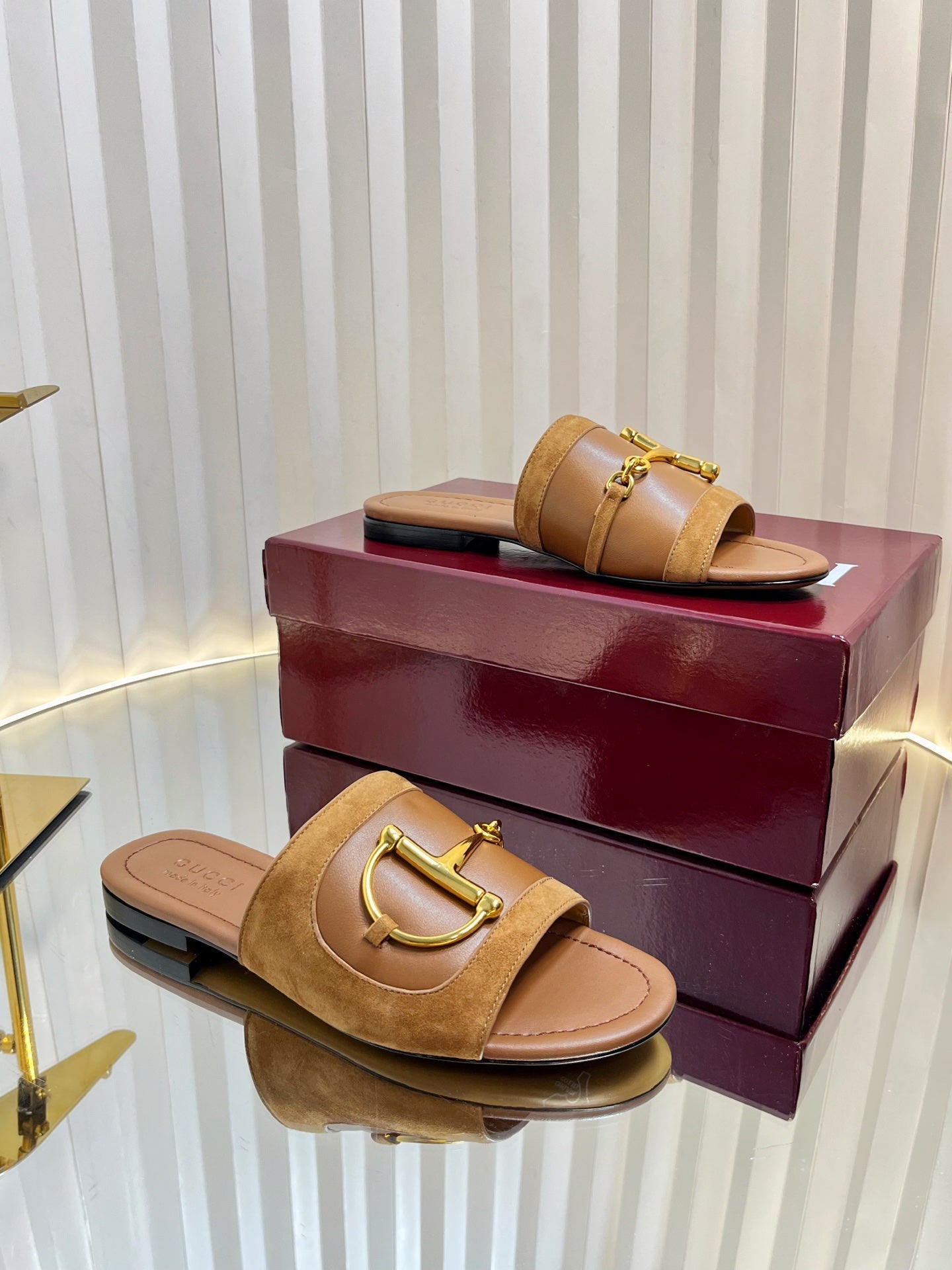 GC 25 Horsebit Sandals 10mm Brown Suede Sheepskin 294650