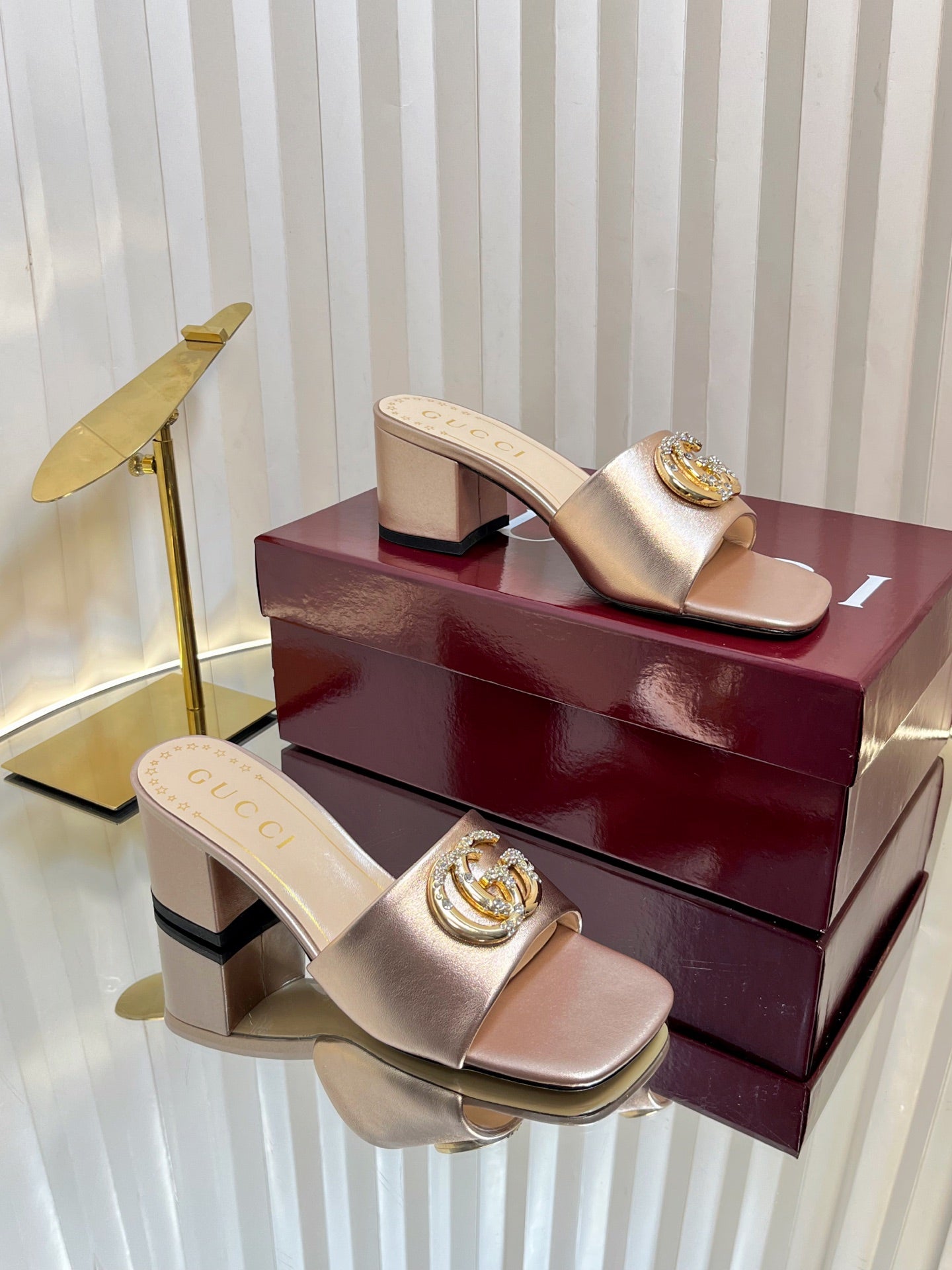 GC 25 Interlocking G Heeled Sandal Nude Patent Leather 294640