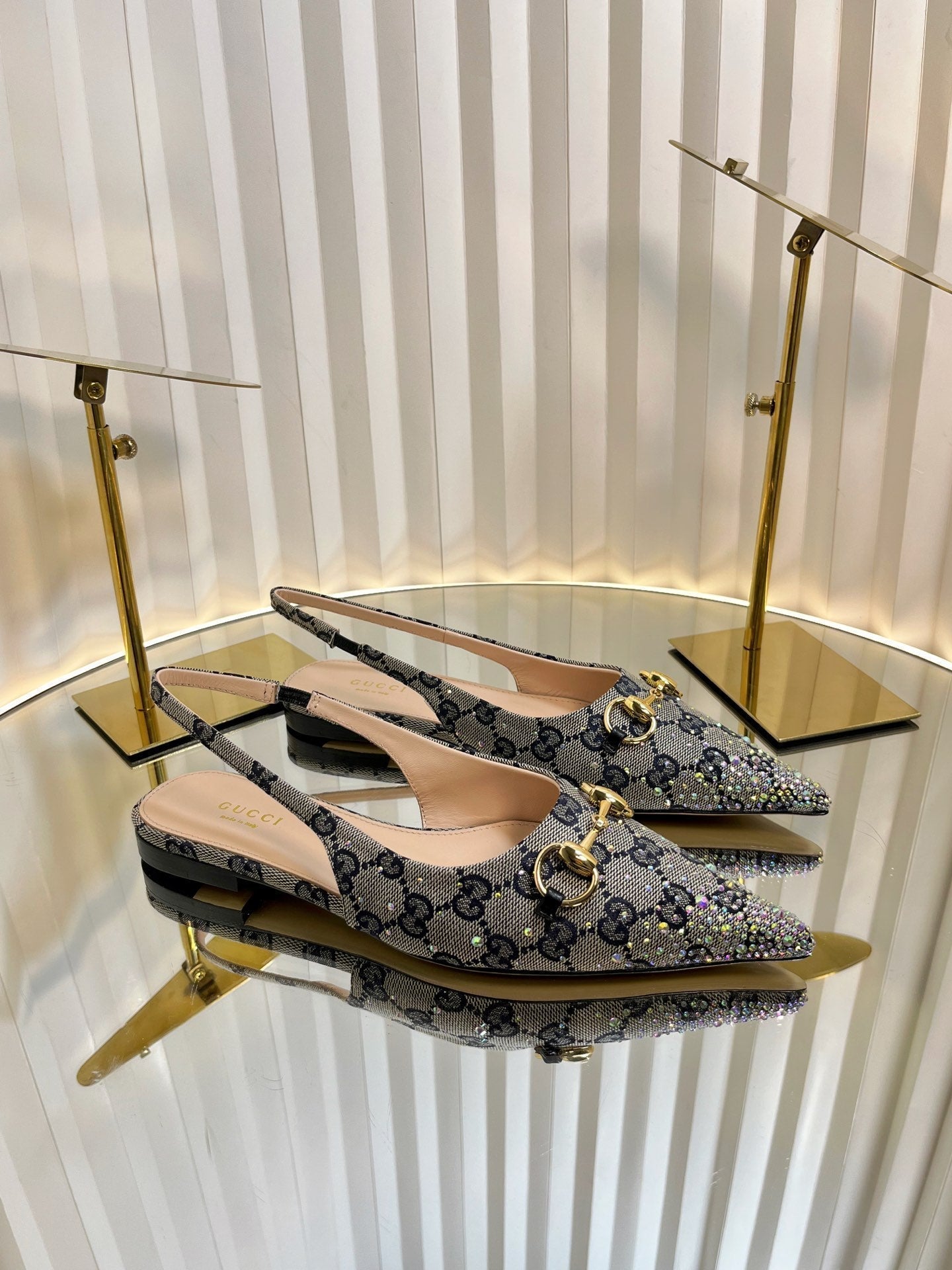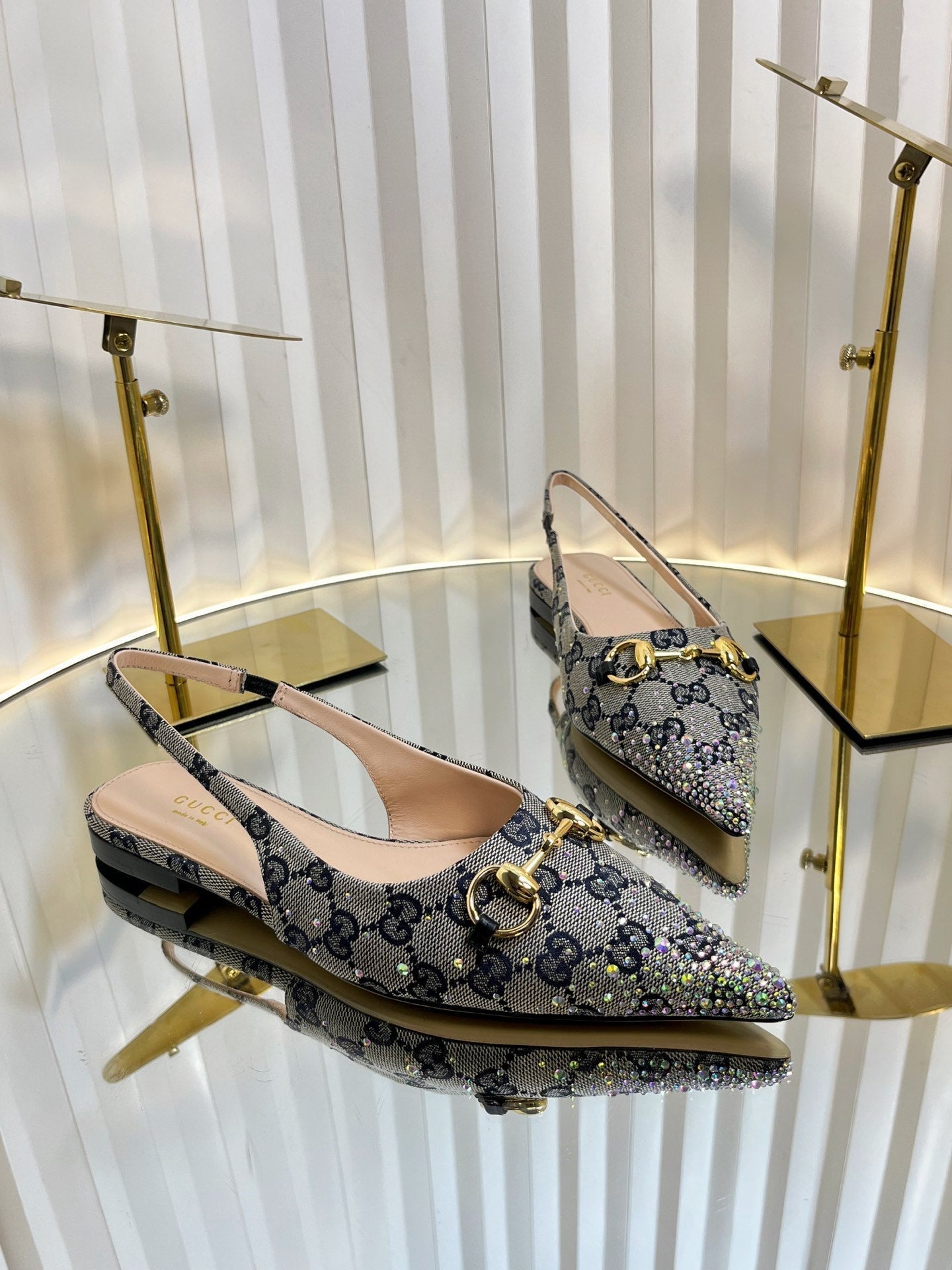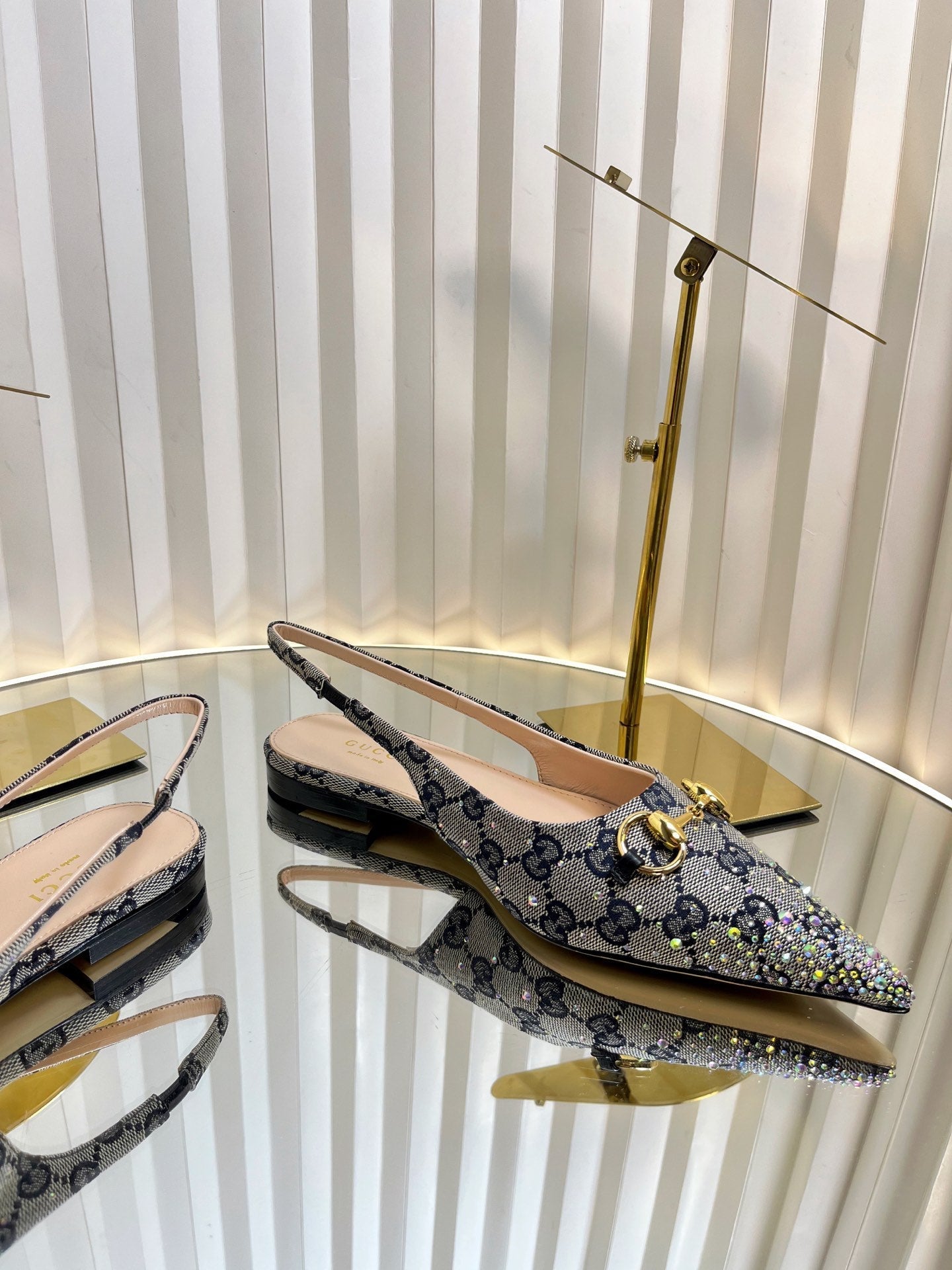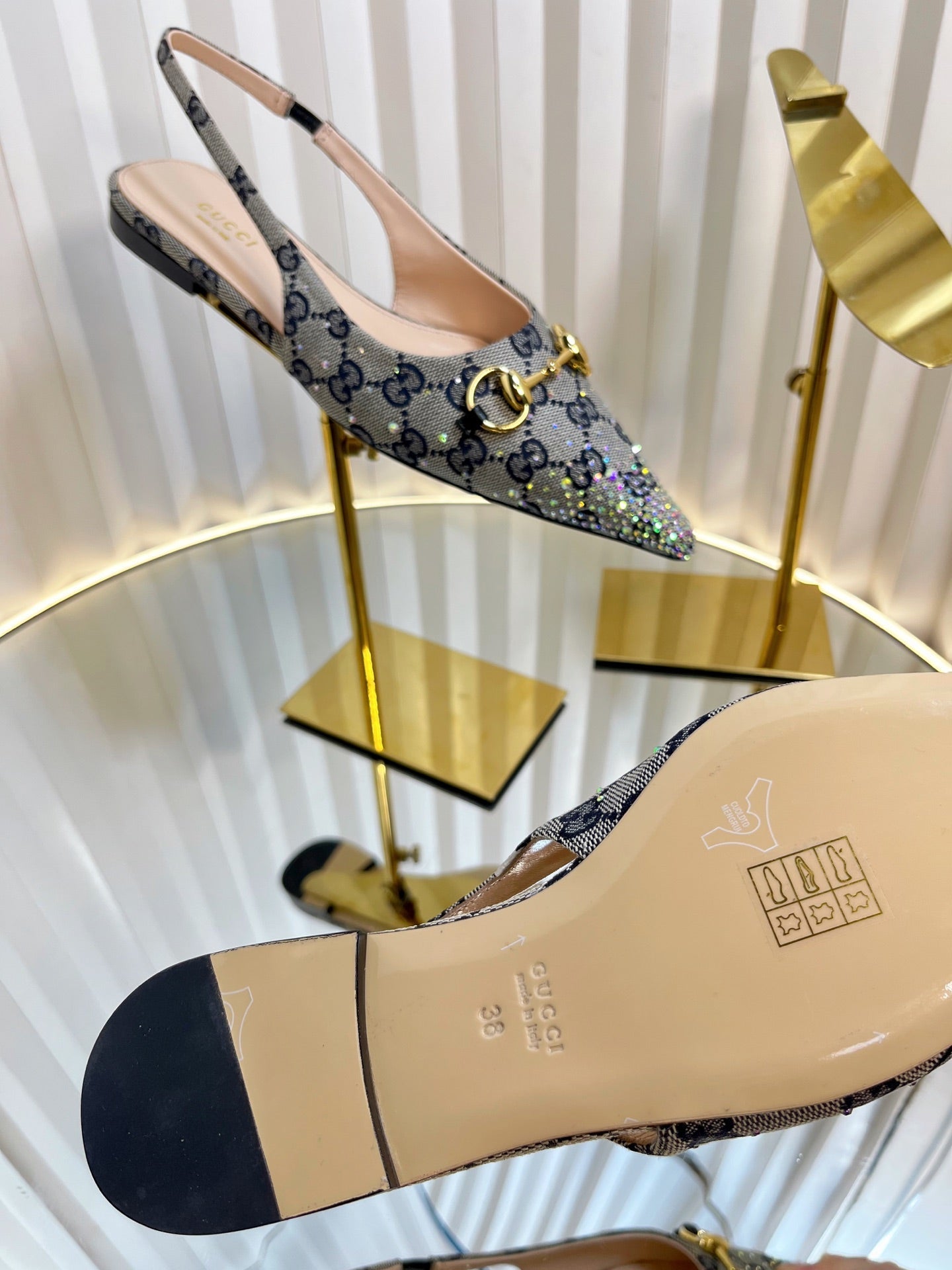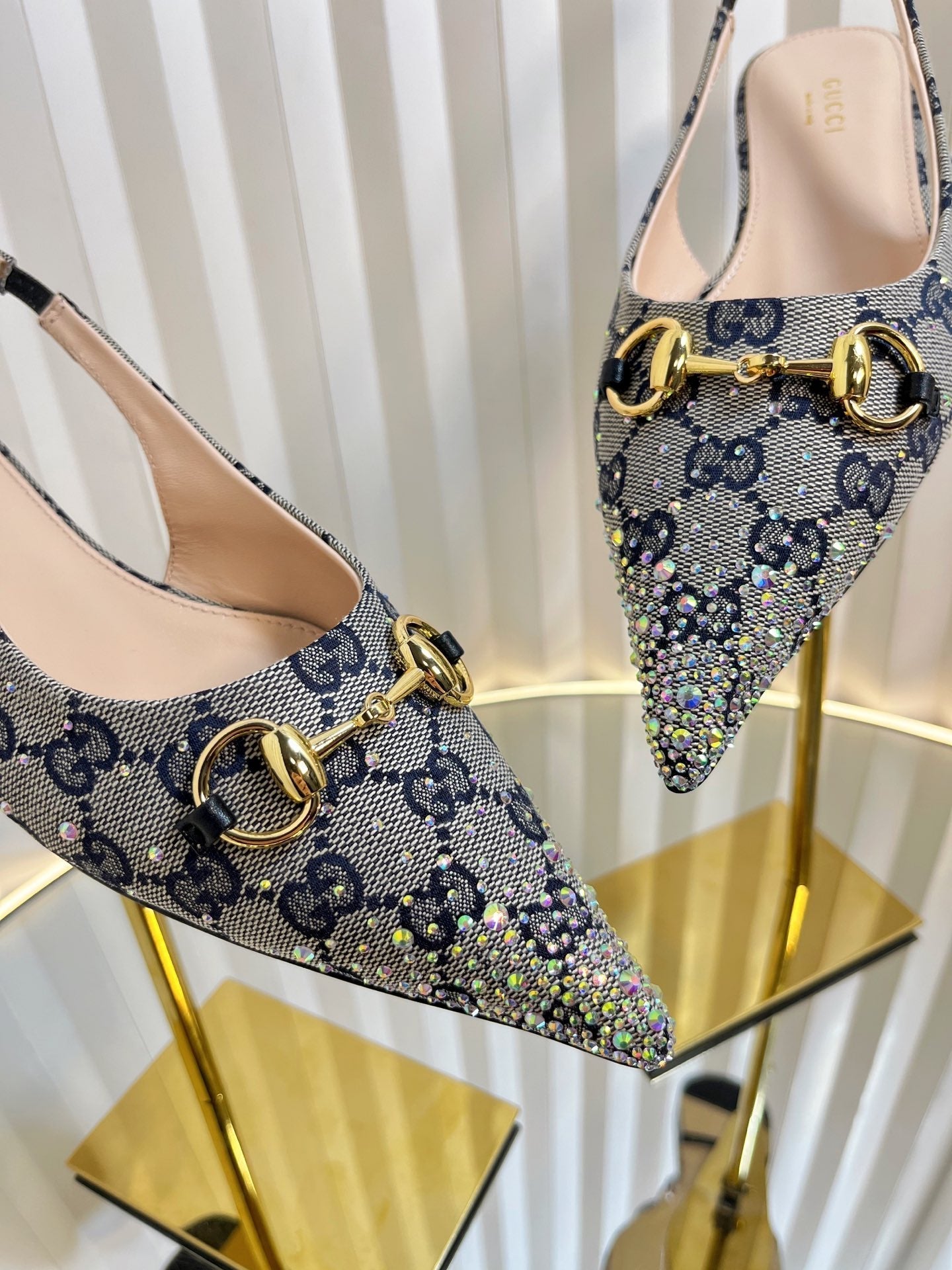 GC Crystal Horsebit Slingback 10mm Beige mix Blue Canvas lambskin 294613