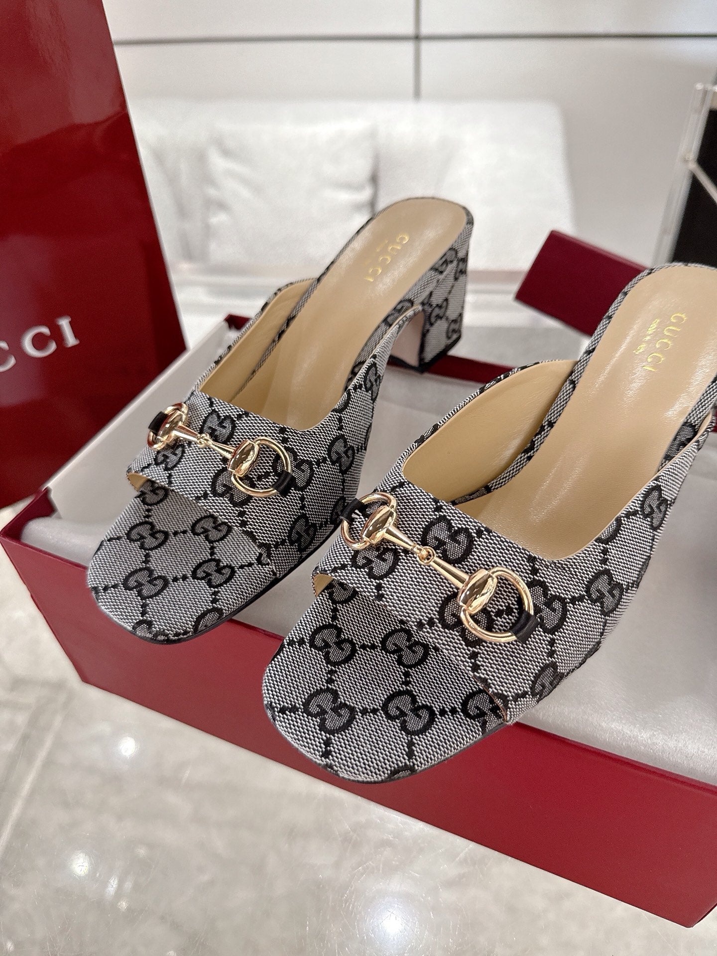 GC Horsebit Slide Gray Canvas Cowhide 292405