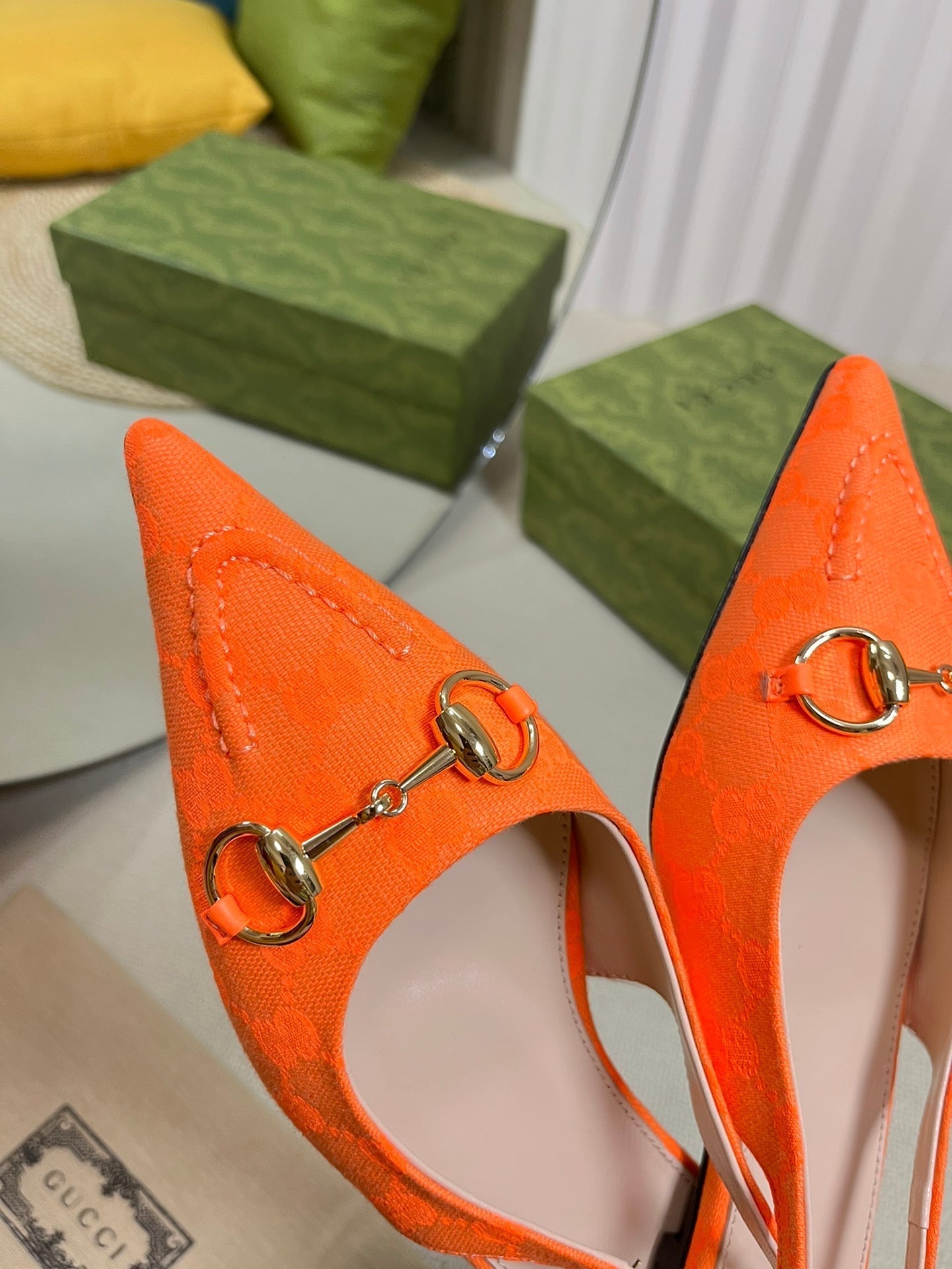 GC Horsebit Slingback Pump 10mm Orange Canvas Sheepskin 294540