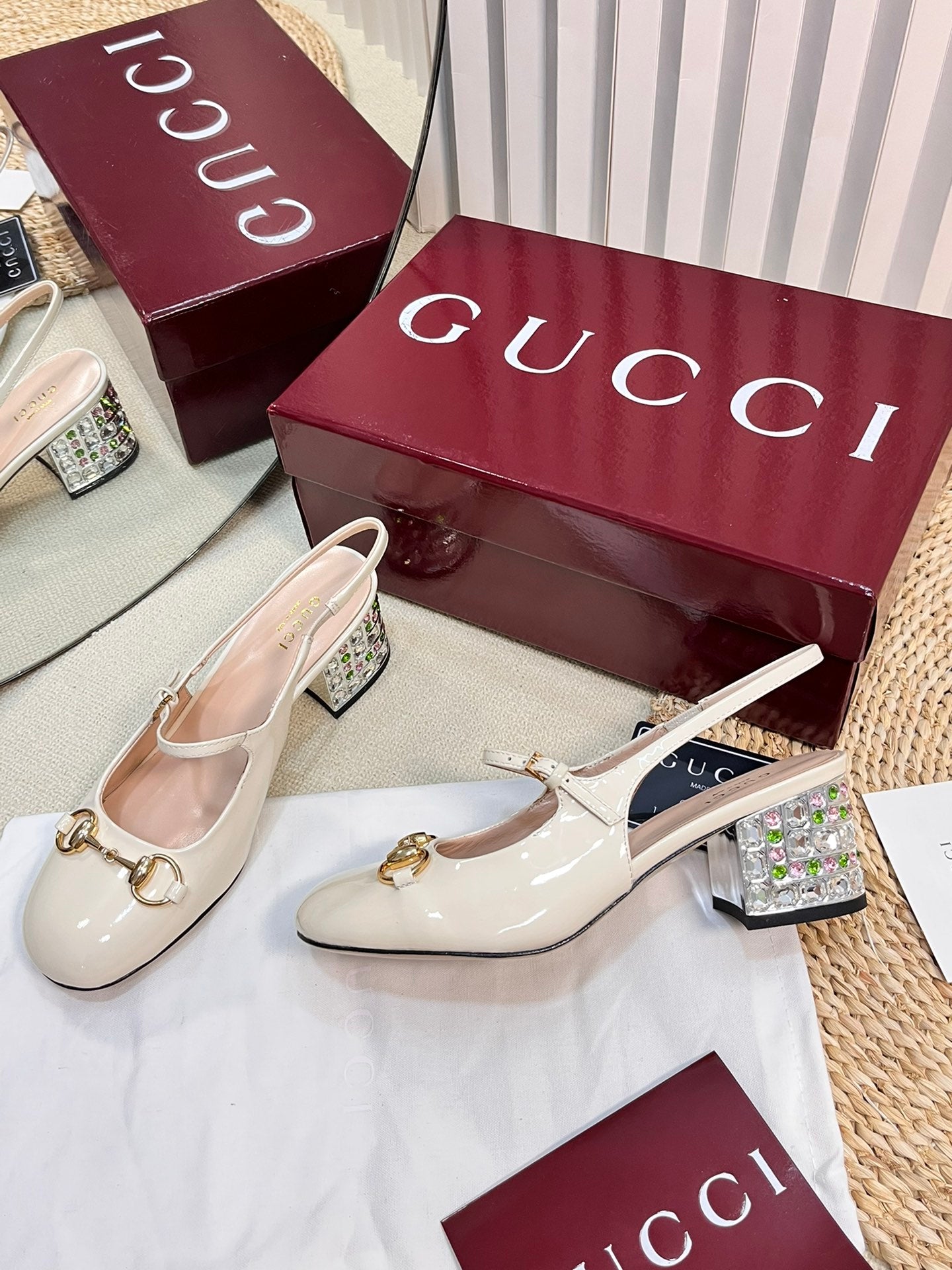 GC Horsebit Slingback with Crystal 60mm Ivory Patent Leather 294599
