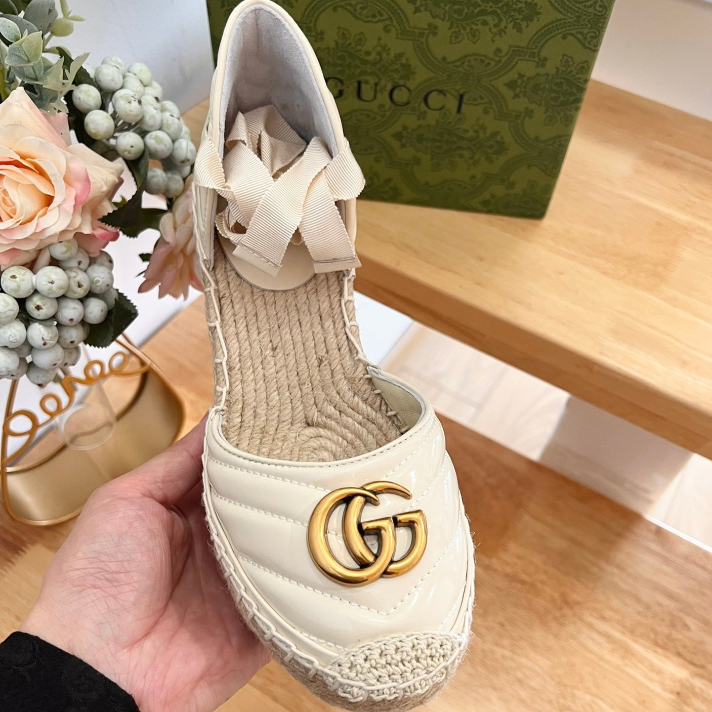 GG Crochet platform Espadrilles White
