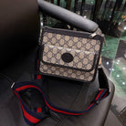 GG SMALL 21 CROSSBODY BAG WITH TAG IN BEIGE CANVAS AND BLACK CALFSKIN