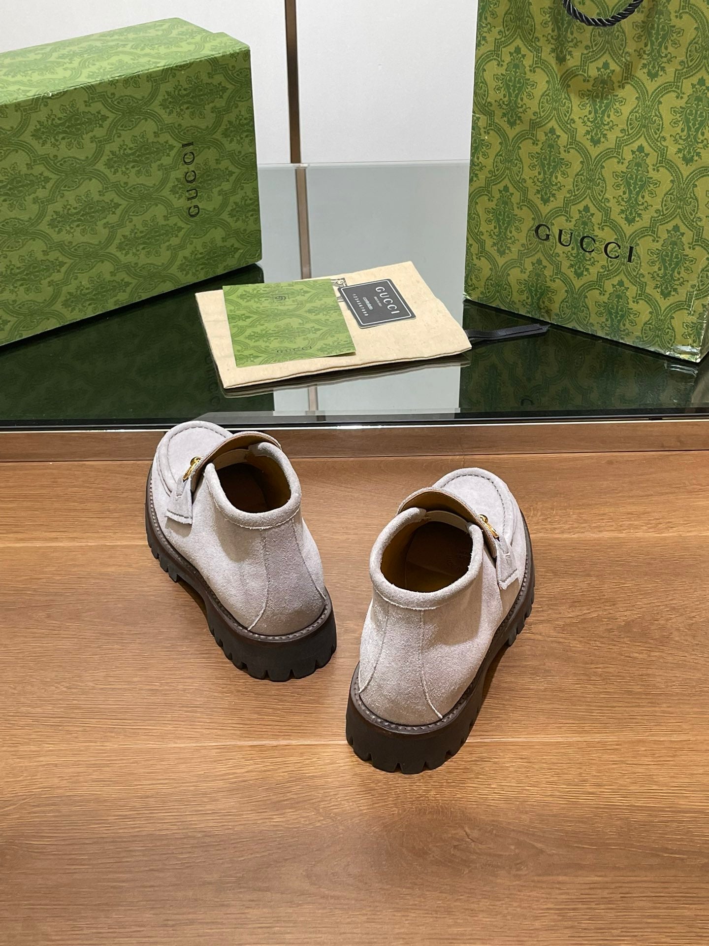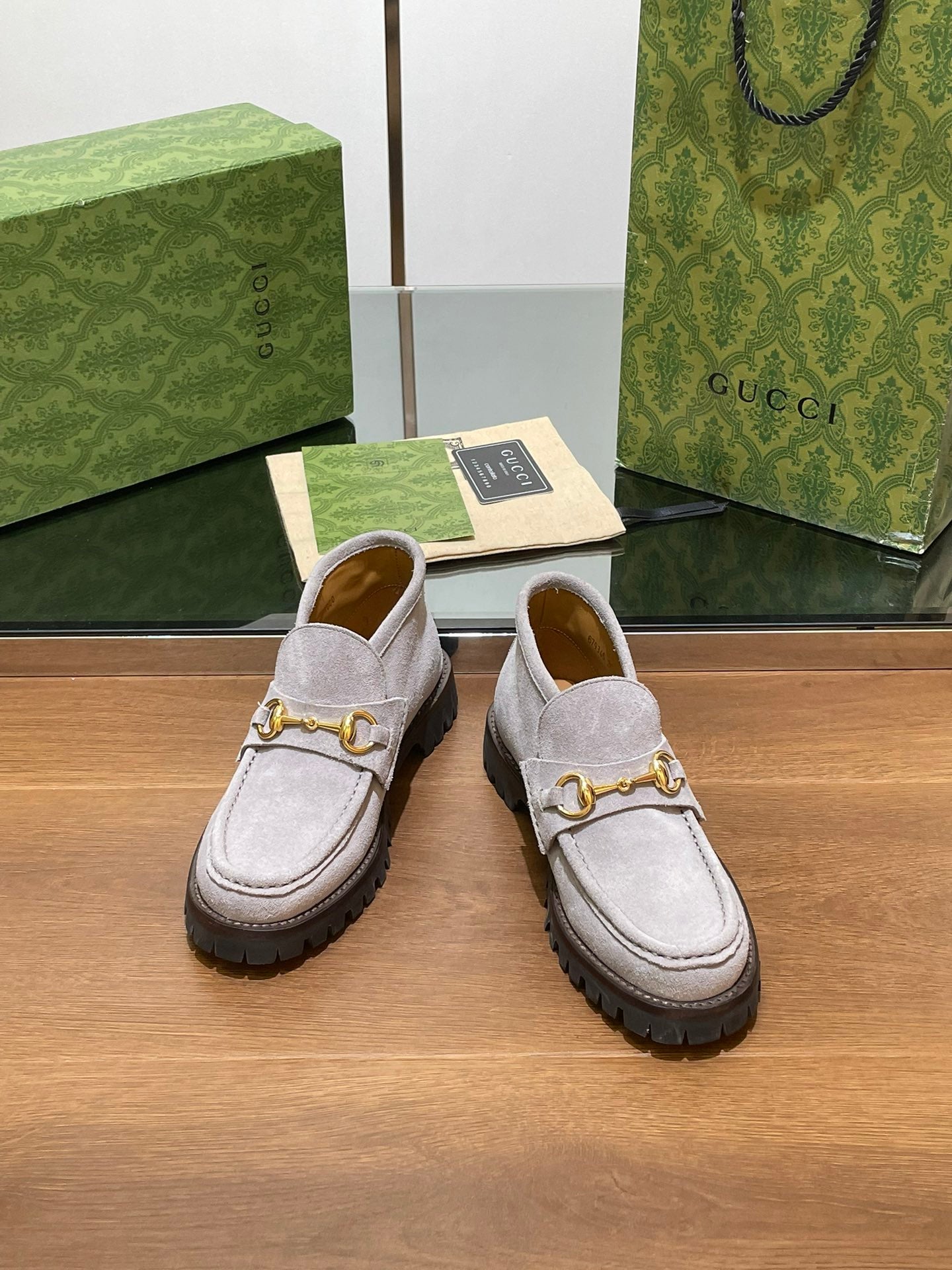 GG WOMEN'S HORSEBIT ANKLE BOOT IN KHAKI BROWN SUEDE