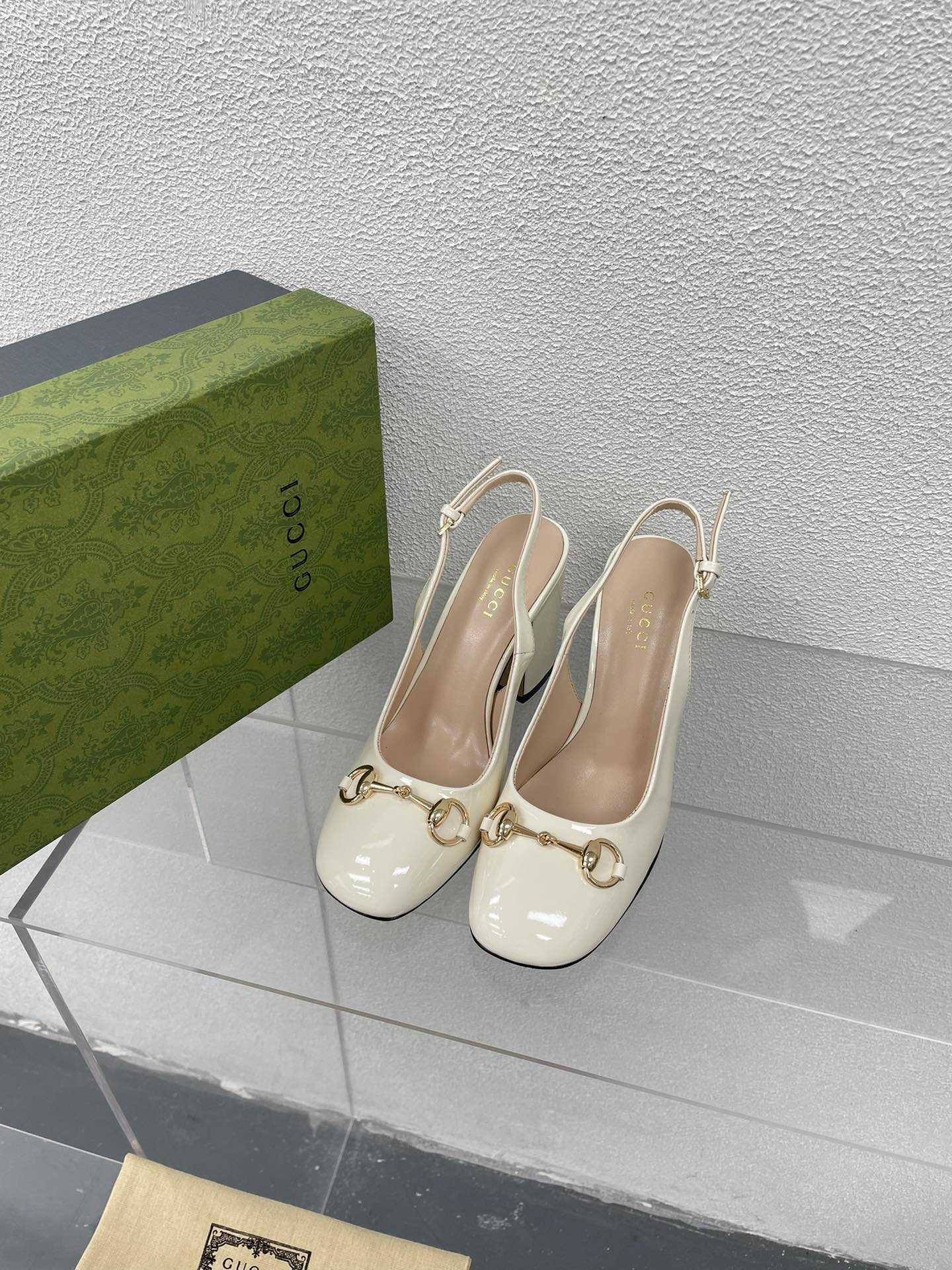 GG WOMEN'S HORSEBIT SLINGBACK 95MM IN WHITE CALFSKIN