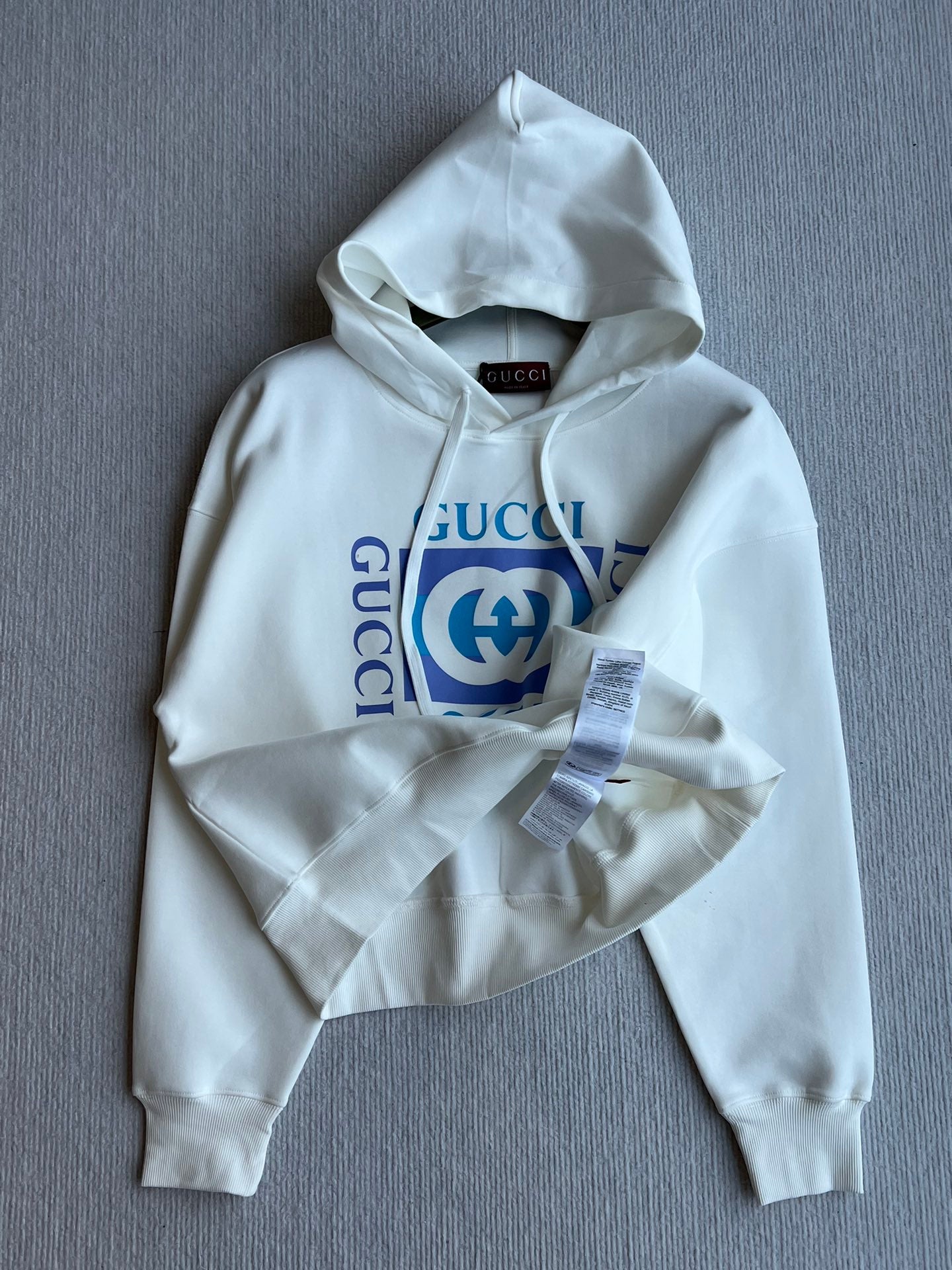 Gucci 2025 Hooded Sweater White Blue Cotton 286045