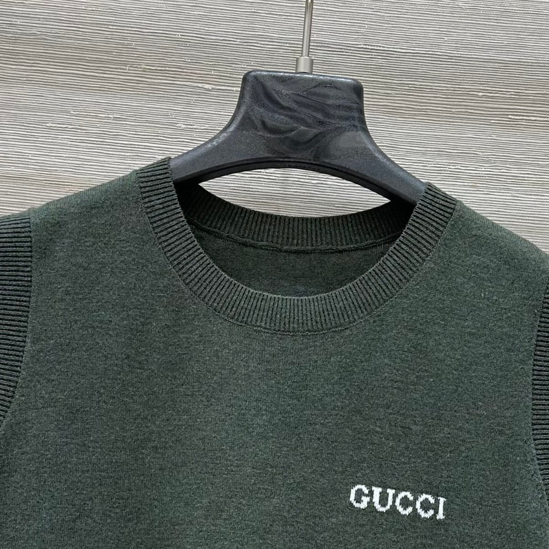 Gucci 2025 Logo Embroidered Knitted Vest Top Green Wool