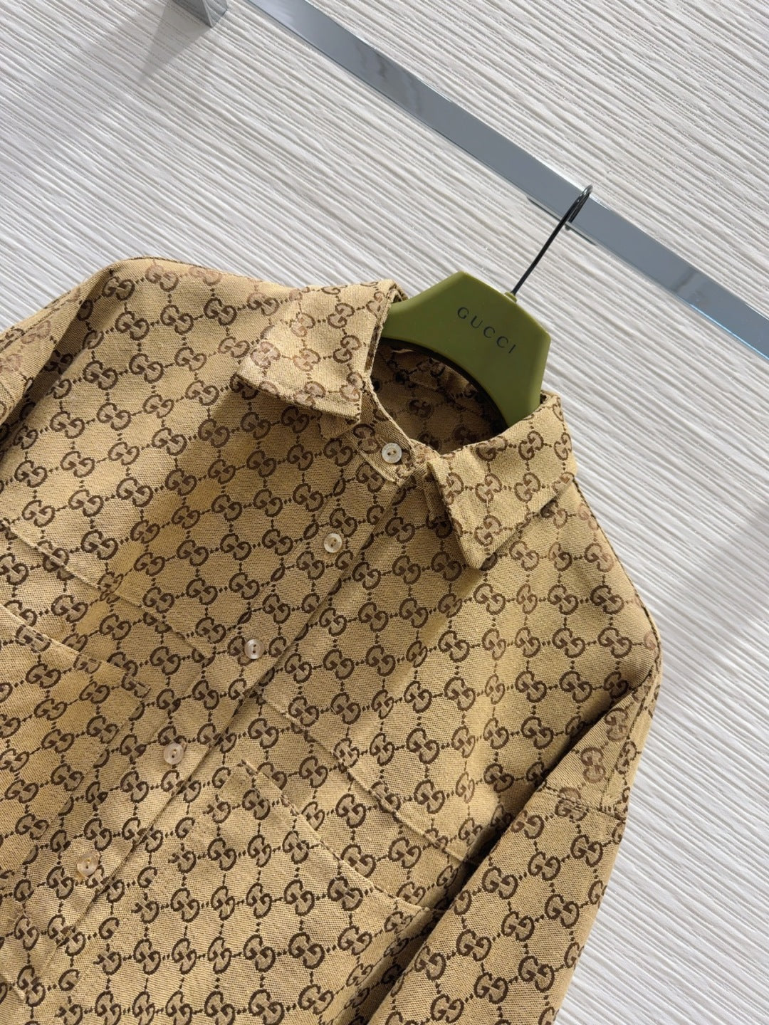 Gucci 2025 Shirt Camel and Ebony Polyester Fiber