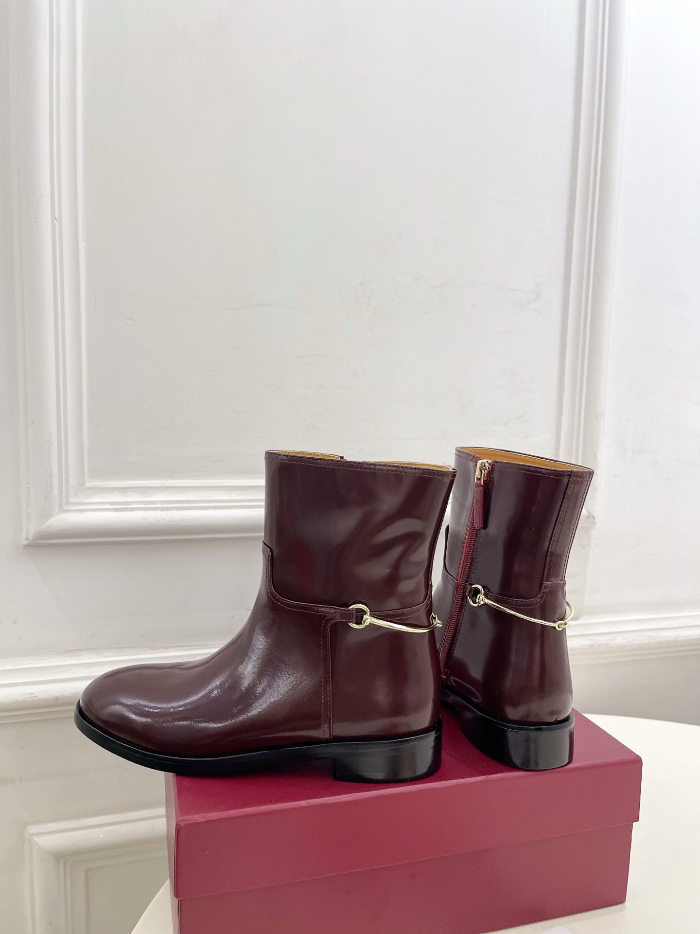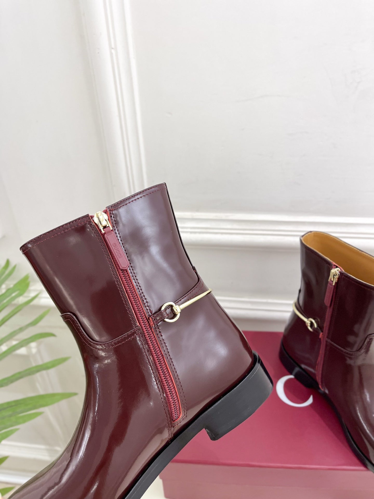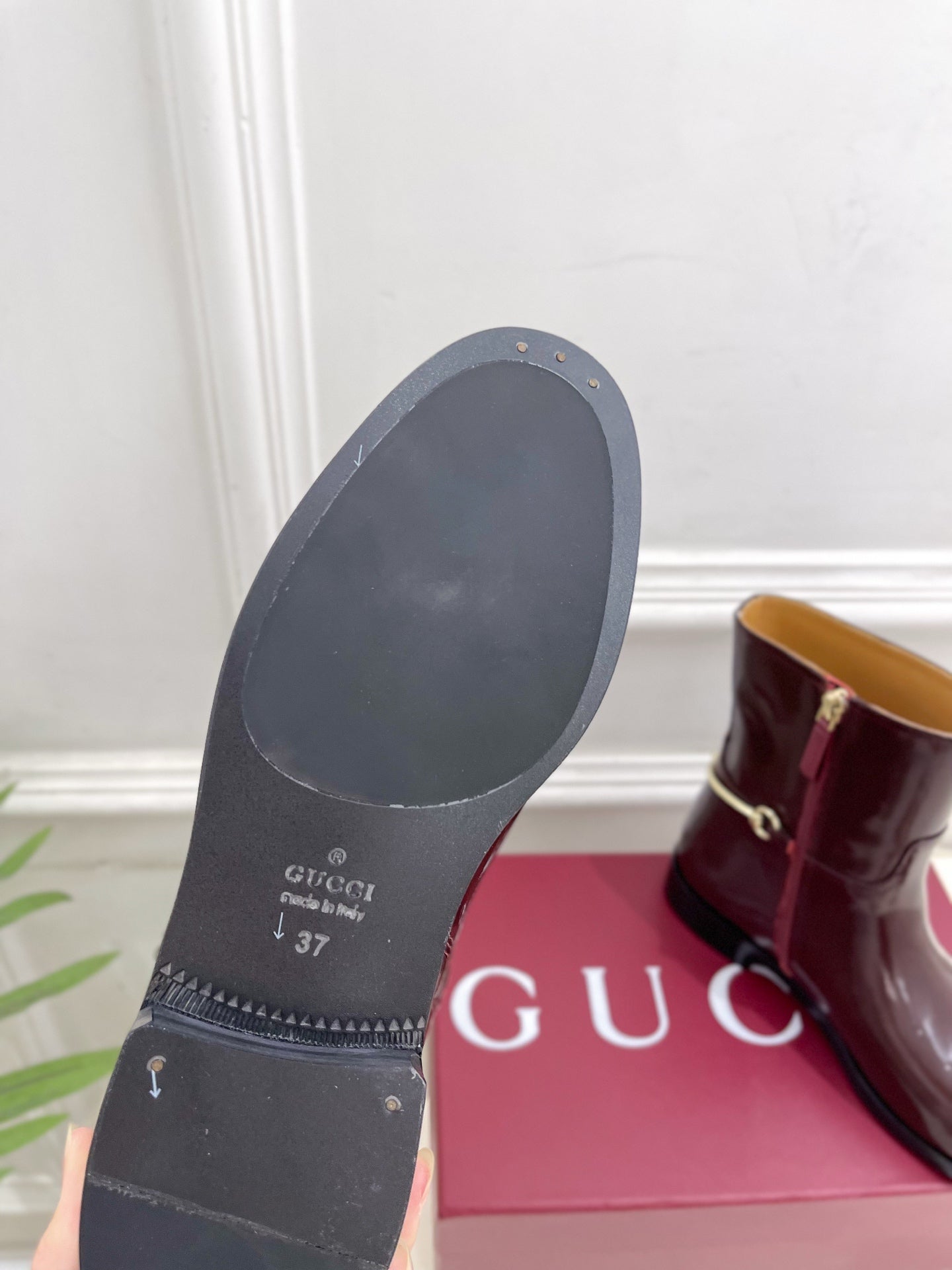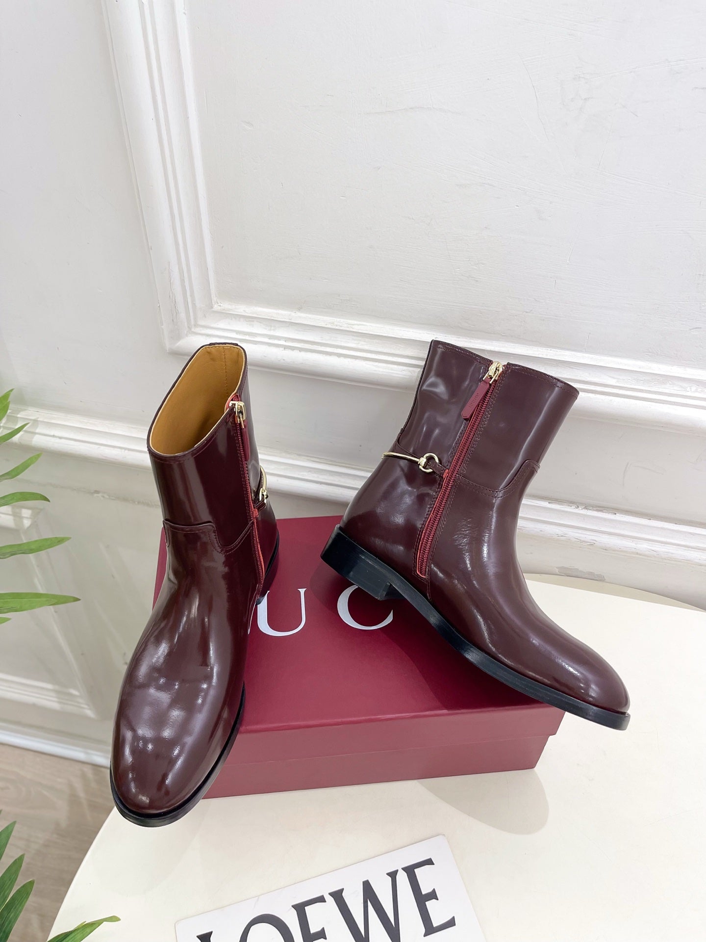 Gucci 25𝐬𝐬 horsebit ankle boots burgundy patent calfskin 435385