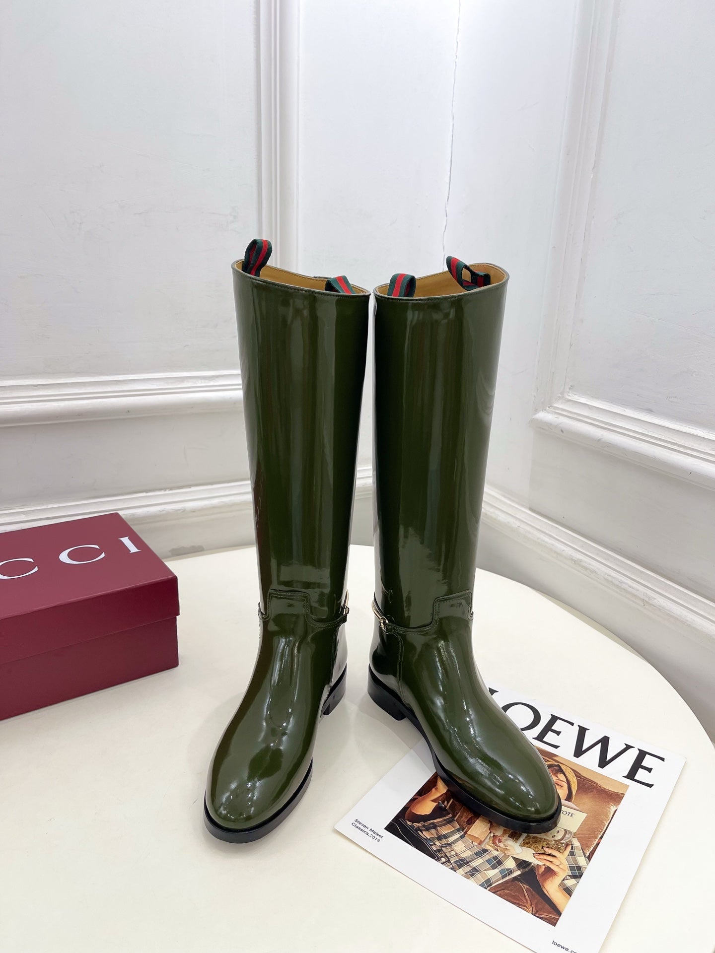 Gucci 25π¬π¬ horsebit long boots dark olive green patent calfskin 435383